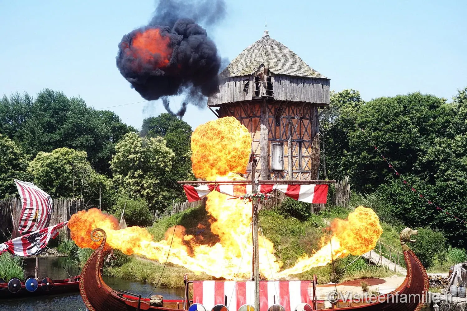 Accueil Pays France Rachel Le Puy du Fou est LE parc à faire absolument en France. Cela faisait longtemps que nous voulions y aller après avoir vu plusieurs documentaires sur ce parc. Nous avons donc profité de nos vacances en Vendée, à Saint-Jean de Mont exactement, pour y aller. Cela faisait un peu de route et nous avons pu rester une seule journée mais c’était magnifique. SommairePuy du FouLes VikingsLe signe du TriompheLe Bal des Oiseaux Fantômes Le secret de la LanceMousquetaires de RichelieuNotre vidéo du Puy du Fou Puy du Fou Si vous pouvez, prévoyez d’y passer 2 jours (cela sera moins la course pour assister à tous les spectacles) et de voir la Cinéscénie. Il parait que c’est grandiose et nous regrettons de n’avoir pas pu y assister. Par contre, il faut réserver assez longtemps à l’avance si on veut avoir de la place. Le Puy du Fou est un parc de loisirs familial situé à Les Epesses en Vendée et essentiellement basé sur des spectacles historiques. Il a été fondé en 1978 par Philippe de Villiers et est maintenant présidé par son fils, Nicolas. Dans ce parc, il n’y a pas de manège excepté un carrousel 1900 car le concept repose sur les divers spectacles présentés. Une foule énorme envahit le parc dès son ouverture. Nous avions acheté des billets ‘privilège’ ce qui nous permettait d’accéder aux 5 plus grands spectacles en priorité. Et heureusement que nous avions opté pour ce système (qui a un coût, certes), car cela nous a permis d’assister au spectacle Le bal des oiseaux fantômes. En effet, lorsque nous sommes arrivés pour voir ce spectacle, ils ne laissaient plus rentrer personne car la salle était remplie. Mais comme nous avions nos pass, on a pu rentrer quand même. Les gens râlaient en nous voyant passer alors qu’eux étaient bloqués mais bon c’est aussi le principe du billet ‘privilège’. On paie plus cher pour un service. Est-ce amorti ? En fait, ça dépend de la fréquentation du parc. Mais il faut tout de même savoir qu’il y a vraiment beaucoup de monde. Nous avons assisté aux grands spectacles suivants qui traduisent une époque bien précise de l’Histoire. Les Vikings – Les Vikings : les guerriers nordiques surgissant de leur drakkar sortant de l’eau attaquent le fort de l’An mille. Un spectacle époustouflant ! Le signe du Triomphe – Le signe du Triomphe : dans les arènes de Rome, des prisonniers gaulois font tout pour sauver leur vie face aux dangereux lions et guerriers Le Bal des Oiseaux Fantômes – Le Bal des Oiseaux Fantômes : la belle Aurore se réveille dans les ruines d’un vieux château et ses souvenirs font surgir du ciel des rapaces, faucons, hiboux… Le secret de la Lance – Le secret de la Lance : la bergère Marguerite utilise une lance donnée par Jeanne d’Arc pour faire fuir les anglais de son château. Mousquetaires de Richelieu – Mousquetaires de Richelieu : les mousquetaires nous offre un beau spectacle mêlant acrobaties, duels et flamenco. Chacun de ces spectacles est grandiose et différent car ils représentent une période différente de l’histoire. Il est difficile de dire celui que nous avons préféré tant ils sont tous magnifiques. Néanmoins, nous donnons peut être notre préférence aux Vikings car voir un drakkar sortir de l’eau complètement (alors que ce dernier était complètement immergé) est une incroyable prouesse. Nous avons également un petit coup de cœur pour les mousquetaires pour l’aspect esthétique et romantique du spectacle. Mais, bien sûr, tout cela est subjectif car ils possèdent tous des qualités indéniables. Les effets spéciaux, les décors de chaque spectacle sont réellement grandioses. En 2016, un nouveau spectacle a vu le jour, Le Dernier Panache, qui fait revivre l’histoire de Charrette, figure de l’insurrection vendéenne lors des guerres de Vendée (1793 à 1796) contre la Terreur révolutionnaire. Il y a aussi les spectacles nocturnes Les Orgues de feu et la renommée Cinéscénie qui fait jouer des milliers de bénévoles les vendredis et samedis soirs uniquement. Malheureusement nous n’avons pas pu y assister.Voir aussiFête des Sorcières de l’Est à Hagondange A côté de ces grands spectacles, les spectateurs peuvent assister à des petits spectacles comme Les chevaliers de la Table Ronde, Les Grandes Eaux, Les musiciens automates, L’Odyssée du Puy du Fou… Les heures de spectacles changent tous les jours donc dès votre arrivée, vous devrez vérifier les horaires des spectacles auxquels vous voulez assister. Si vous avez le temps, vous pouvez également visiter les villages du Puy du Fou : le bourg 1900 avec son carrousel, le fort de l’An Mil avec ses maisons en toit de chaume, la cité médiévale, le village XVIIIe siècle. Le parc jouit d’un fort engouement du public, séduit par les divers documentaires sur le sujet. De plus, le Grand Parc a été élu meilleur parc d’attraction du monde, ce qui conduit à une popularité bien méritée. Nous y étions par une chaude journée de juillet et il n’y a pas beaucoup d’ombre où s’abriter dans le parc. Les spectateurs sont à découvert sur la plupart des grands spectacles, excepté celui des Mousquetaires de Richelieu qui se déroule dans un théâtre. Pour Le signe du triomphe, une sorte d’auvent se met en place électriquement ce qui permet d’avoir un peu d’ombre. Donc il peut être préférable d’y aller en dehors de la période estivale. Le parc ouvre ses portes début avril pour les fermer fin novembre. Notre vidéo du Puy du Fou
