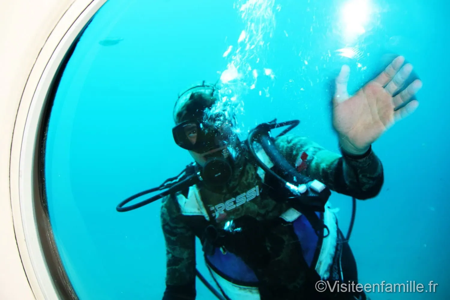 Accueil Pays Lanzarote-Canaries Rachel En février 2015, nous avons décidé de chasser le froid et la grisaille de l’hiver pour aller chercher un peu de soleil et de chaleur à Lanzarote, une île des Canaries, reconnue pour avoir une température clémente toute l’année. Cette île volcanique est constituée de centaines de volcans et on y trouve des traces des éruptions passées. L’arrivée à Lanzarote Nous avons séjourné à l’hôtel Riu Paraiso à Puerto del Carmen pour une semaine. Puerto del Carmen est une ville idéalement située pour visiter l’île. Voici les détails de notre voyage dans les Canaries. Tout sur cette île est inspiré de la pensée de l’artiste insulaire César Manrique. En effet, de nombreux sites de Lanzarote à visiter ont été construits par cet artiste et sa pensée est présente partout sur l’île. Notre hôtel Riu Paraiso (pour notre avis sur l’hôtel, voir la catégorie Hôtels du site) Que faire à Lanzarote ? Certains pourraient se dire que c’est une petite île et qu’il n’y a forcément pas grand-chose à y faire. S’il est vrai que l’île n’est pas grande (elle mesure environ 60 km de long et 25 km de large), et en une semaine, on en fait le tour, il y a tout de même des choses à visiter et on ne s’ennuie pas. Par exemple, Lanzarote est réputée pour sa production d’aloe vera (plante aux vertus thérapeutiques). On en fait des crèmes, des savons… Elle produit également des cochenilles et du vin. Et sans compter les nombreux volcans. Il y a donc pas mal de visites à faire et la semaine passée est bien remplie. La plage en face de notre hôtel Pour se rendre sur cette belle plage surveillée, il suffit de traverser une route. Le centre-ville de Puerto del Carmen Il faut compter une demi-heure à pieds pour se rendre au centre-ville où une multitude de petites échoppes se côtoient de chaque côté de la route, souvent tenues par des chinois (moins chers et plus sympas) ou des indiens. On a acheté une robe andalouse à notre fille à 4,99 euros et quelques bricoles. On en a eu pour 15 euros au total et la vendeuse a donné un bracelet à notre fille, petite attention commerçante très appréciée. Comme à Paris, à Lanzarote on trouve aussi des cadenas de l’amour (cadenas installés là par des amoureux qui veulent sceller leur amour pour toujours). Ensuite, nous avions loué une voiture pour 4 jours. La conduite se fait aisément sur cette île, car les routes sont belles et bien entretenues. Vous pouvez donc facilement effectuer vos excursions vous-mêmes sans les prendre via un tour opérateur qui vous fera payer plus cher. Notre itinéraire nous a d’abord conduits au parc national de Timanfaya, visite incontournable si vous êtes sur l’île. Parc national de Timanfaya Tour en dromadaire Avant d’arriver véritablement au volcan, nous nous arrêtons en chemin pour faire un tour de dromadaire : 12 euros le dromadaire pour 2 personnes. On est dans un équipage d’une 10aine de dromadaires accompagnés par un chamelier. Ils sont lestés de manière à ce que les poids soient équitablement répartis de chaque côté de la bosse. Nous étions donc installés dans des chaises de chaque côté de la bosse. C’est très touristique, mais bon c’est l’occasion pour nous et les enfants de monter sur un dromadaire. Notre tour dure environ 30 minutes. Nous montons une partie d’un volcan, nous faisons un stop photo en haut. Notre chamelier, très sympa, nous a photographié nos enfants et nous. Nous avons ainsi vu que tout le monde n’était pas logé à la même enseigne, car le groupe qui nous suivait ne marquait pas le stop et ne faisait pas de photo. Pour cela, notre chamelier a eu droit à un pourboire. La descente du volcan est un peu plus laborieuse, car on saute dans tous les sens. Timanfaya On gare sa voiture puis on visite le parc national en bus pour des raisons de préservation des plantes autochtones. On voit ainsi les restes des éruptions passées, la lave refroidie rendant la visite à pied inaccessible et accentuant le caractère lunaire du site. Le bus vous emmène à la découverte d’une partie des 300 volcans de l’île et une cassette explique la formation de ces volcans. Le hic c’est que les explications étaient uniquement en anglais et en allemand. En haut, le restaurant El diablo est situé en plein sur le volcan, ce qui est pratique et économique pour faire cuire la viande. En effet, un grand trou a été creusé sur lequel on a dressé une grille sur laquelle cuisent des cuisses de poulet et autres… La viande est donc cuite grâce à la chaleur du volcan. Pour le plaisir des touristes, un homme nous fait la démonstration de la chaleur du volcan situé sous nos pieds. Il nous donne des petits cailloux rouges et si chauds qu’il est difficile de les garder en main. Ensuite nous nous approchons d’un trou dans lequel il verse de la paille qui prend feu. Ensuite, nous voyons différents trous dans le sol. L’homme verse de l’eau dans ses trous d’où jaillissent alors des geysers et nous nous retrouvons donc mouillés lorsque l’eau redescend. Exploration en sous-marin à Puerto Calero, Lanzarote Puerto Calero se trouve un peu en dessous de Puerto del Carmen. Nous avons eu l’occasion de faire une visite exceptionnelle, une descente à plus de 30m sous l’océan atlantique à bord d’un sous-marin avec Submarine Safaris. Cette sortie est assez chère et doit être réservée à l’avance, mais elle vaut vraiment le coup. Ce n’est pas tous les jours qu’il nous est donné de faire une ballade en sous-marin. Avant de monter dans le sous-marin, nous assistons tout d’abord à un petit film précisant les consignes de sécurité à effectuer en cas de problèmes (comme quand on prend l’avion). Mon fils me demande alors ‘Maman on va devoir faire tout ça’. Je lui réponds que j’espère bien que non. Lorsque nous arrivons au sous-marin, un photograp