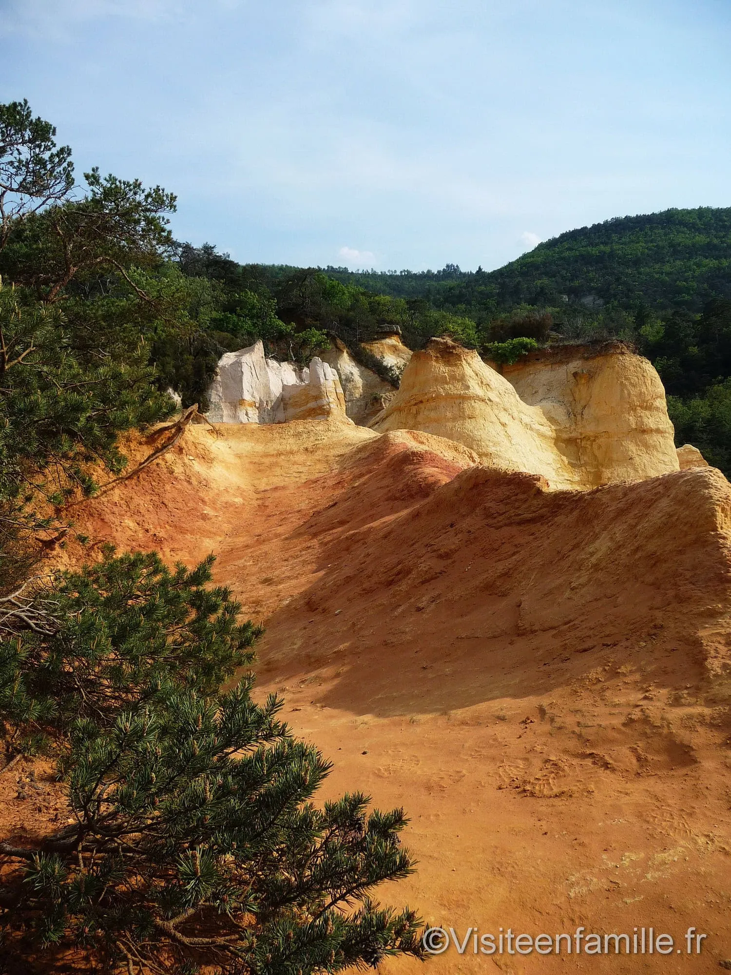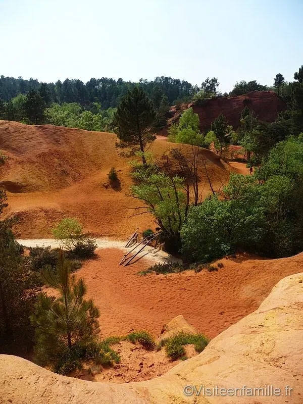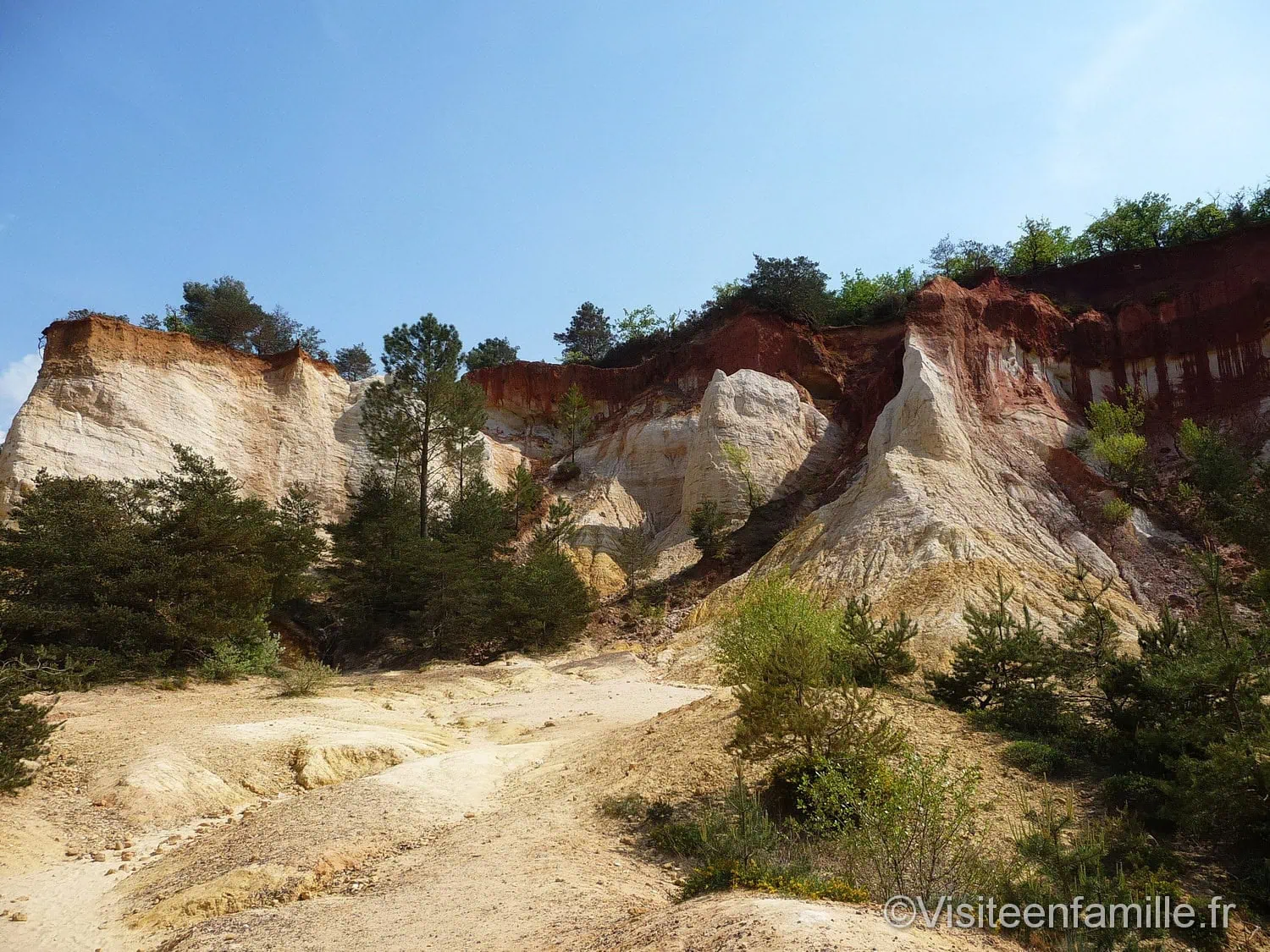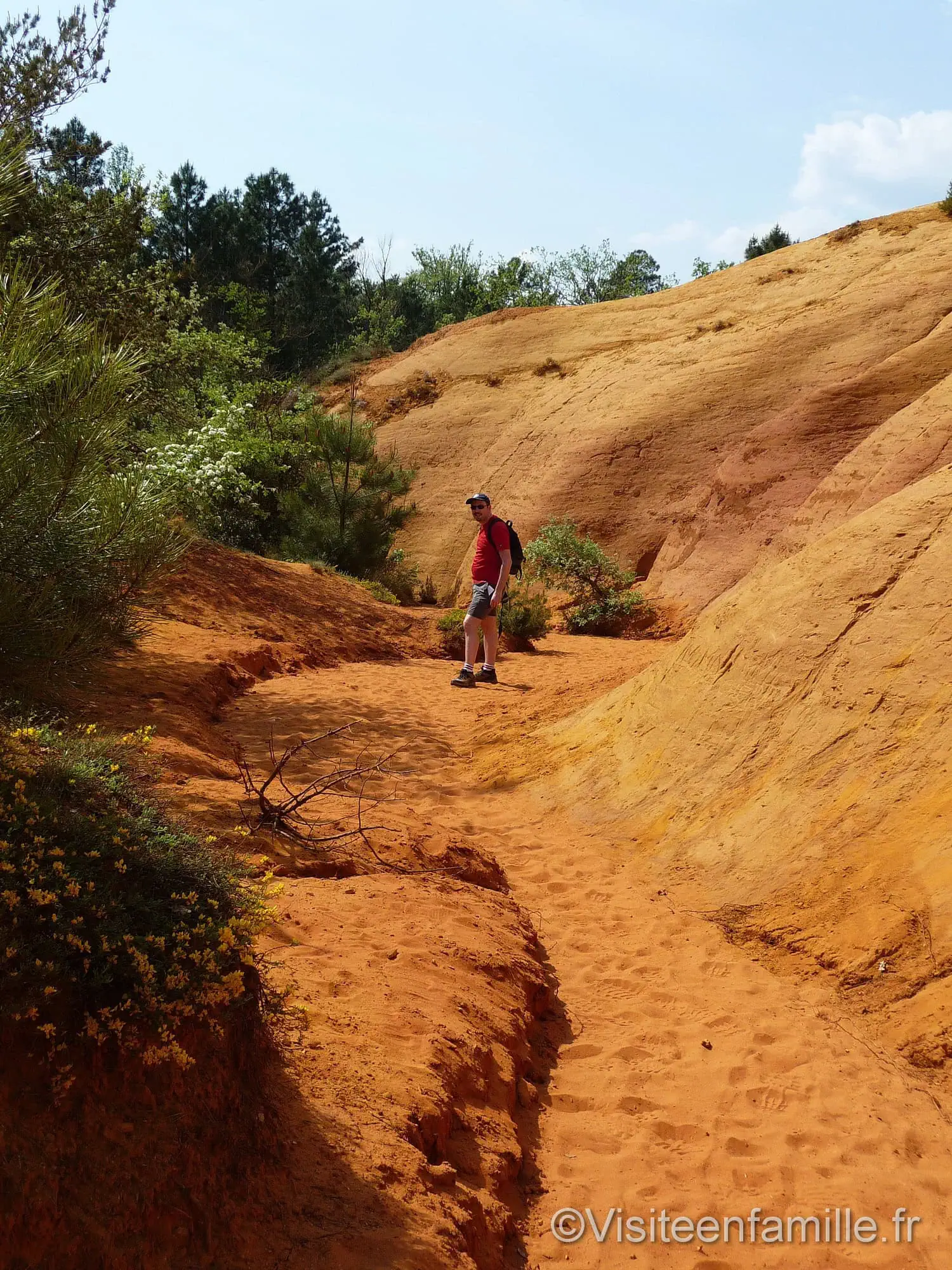 Accueil Pays France Rachel Situé sur la commune de Rustrel, le Colorado provençal est un site semi-privé qui offre un spectacle magnifique aux randonneurs. On se croirait aux États-Unis tellement le panorama est dépaysant. Époustouflant. Le temps d’un après-midi, nous nous retrouvons dans l’Ouest américain. Pour accéder au site, on est obligé de stationner la voiture sur le parking payant du site (5€ pour une voiture, 2€ pour une moto, 8€ pour un camping-car). Il faut donc débourser quelques euros, mais en contrepartie on vous donne un prospectus avec les balades à faire et vous pouvez y rester le temps que vous voulez. D’ailleurs, une partie de cet argent sert à entretenir et aménager les sentiers. Inutile de sortir vos beaux habits blancs pour aller se promener dans le Colorado. En effet, vous ressortirez de là orangé. La couleur spécifique du Colorado provençal vient de l’ocre. Il y a plus de 20 teintes d’ocres différentes. Ces différentes couleurs proviennent des exploitations de ces anciennes carrières d’ocre. L’homme a donc contribué au façonnage de ces paysages multicolores, mais l’érosion joue également un rôle important. Pour nous mettre dans l’ambiance, les enfants et moi avons joué aux Indiens en nous mettant de l’ocre orange sur le visage. Ils étaient enchantés d’avoir le droit de se salir pour une fois. Alors c’était la fête ! Seul le papa n’a pas voulu jouer le jeu ! Notre balade nous mène sur les collines d’ocre puis dans les cirques (cirque de Barriès, cirque de Bouvène), on passe par le Sahara. On découvre des tunnels, des grottes. On passe devant les cheminées de fée (sorte de colonnes naturelles qui se dressent vers le ciel). Impressionnant. Voir aussiHalloween au château de Menthon Si l’on veut partir sur les traces de ces anciens ocriers, il faut également visiter le village de Roussillon où les couleurs rouge, orange, rouille prennent tout leur sens. D’autres photos de ce lieu magnifique :