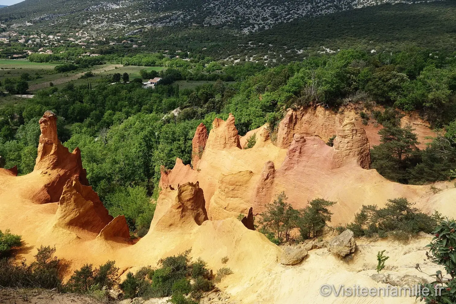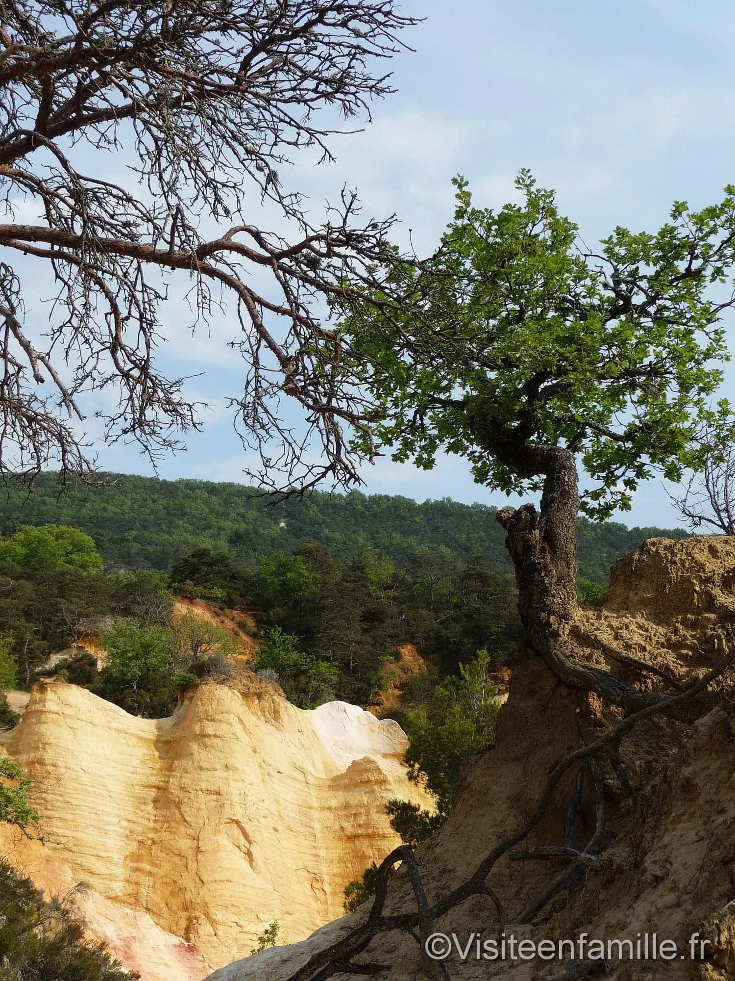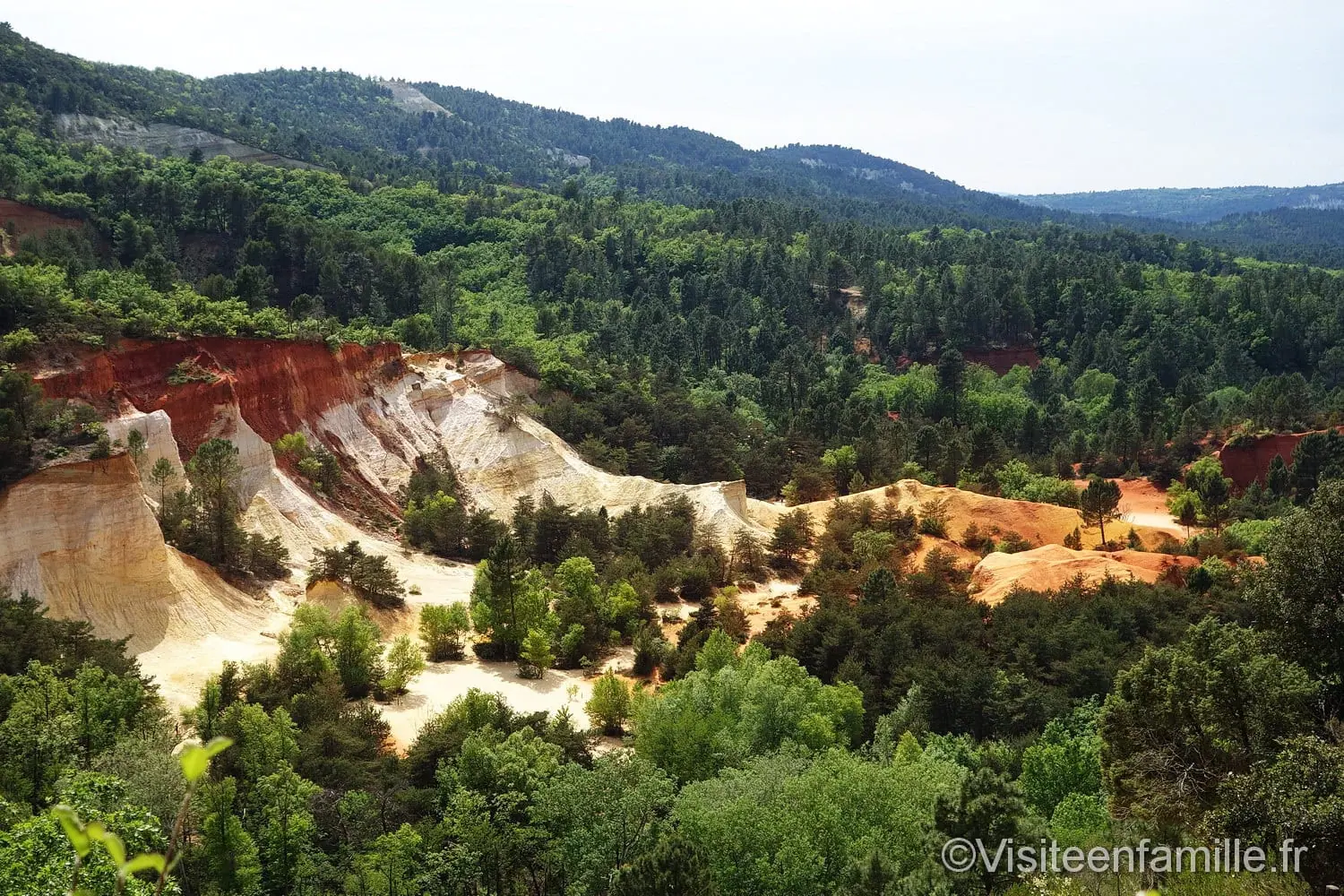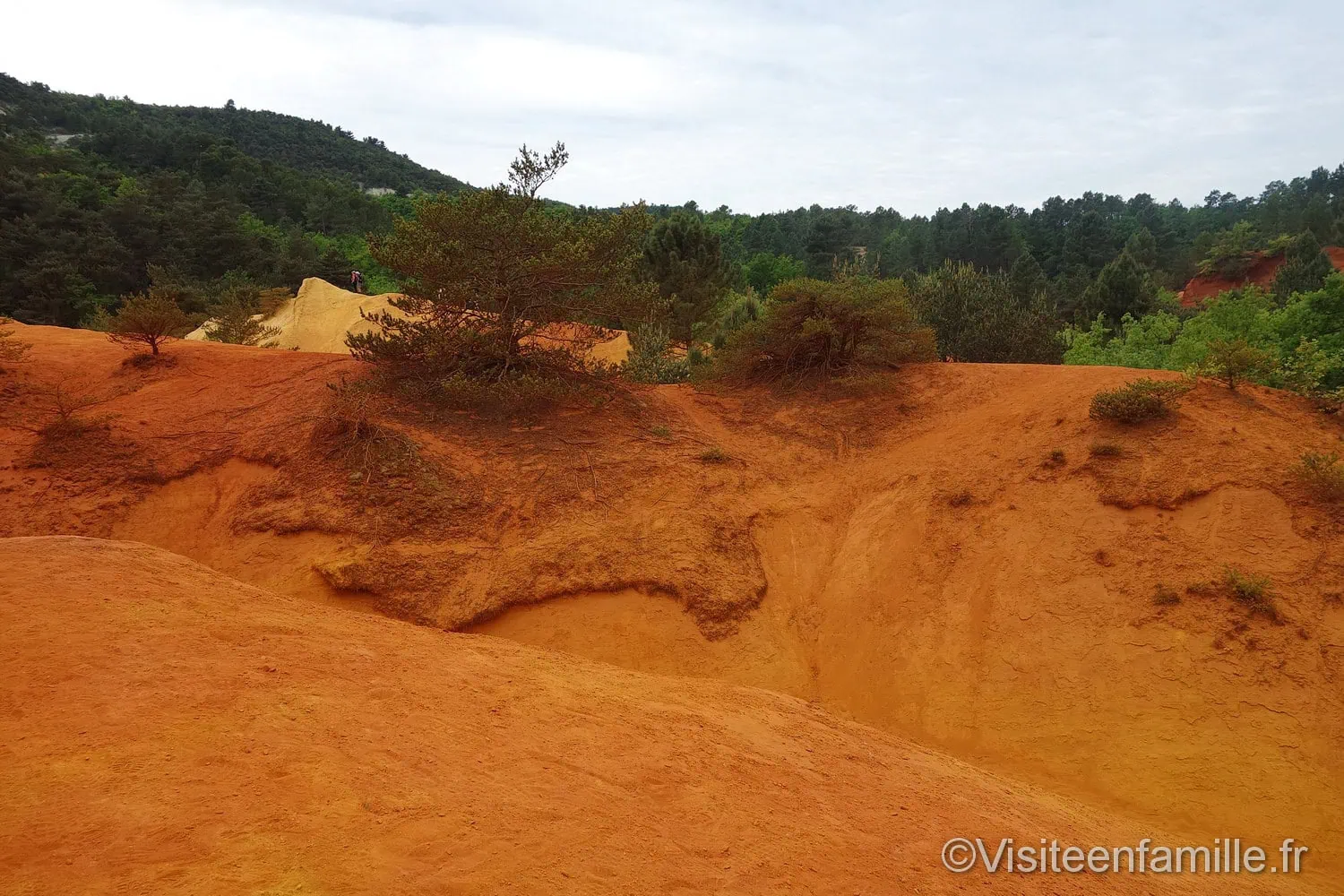 Accueil Pays France Rachel Situé sur la commune de Rustrel, le Colorado provençal est un site semi-privé qui offre un spectacle magnifique aux randonneurs. On se croirait aux États-Unis tellement le panorama est dépaysant. Époustouflant. Le temps d’un après-midi, nous nous retrouvons dans l’Ouest américain. Pour accéder au site, on est obligé de stationner la voiture sur le parking payant du site (5€ pour une voiture, 2€ pour une moto, 8€ pour un camping-car). Il faut donc débourser quelques euros, mais en contrepartie on vous donne un prospectus avec les balades à faire et vous pouvez y rester le temps que vous voulez. D’ailleurs, une partie de cet argent sert à entretenir et aménager les sentiers. Inutile de sortir vos beaux habits blancs pour aller se promener dans le Colorado. En effet, vous ressortirez de là orangé. La couleur spécifique du Colorado provençal vient de l’ocre. Il y a plus de 20 teintes d’ocres différentes. Ces différentes couleurs proviennent des exploitations de ces anciennes carrières d’ocre. L’homme a donc contribué au façonnage de ces paysages multicolores, mais l’érosion joue également un rôle important. Pour nous mettre dans l’ambiance, les enfants et moi avons joué aux Indiens en nous mettant de l’ocre orange sur le visage. Ils étaient enchantés d’avoir le droit de se salir pour une fois. Alors c’était la fête ! Seul le papa n’a pas voulu jouer le jeu ! Notre balade nous mène sur les collines d’ocre puis dans les cirques (cirque de Barriès, cirque de Bouvène), on passe par le Sahara. On découvre des tunnels, des grottes. On passe devant les cheminées de fée (sorte de colonnes naturelles qui se dressent vers le ciel). Impressionnant. Voir aussiHalloween au château de Menthon Si l’on veut partir sur les traces de ces anciens ocriers, il faut également visiter le village de Roussillon où les couleurs rouge, orange, rouille prennent tout leur sens. D’autres photos de ce lieu magnifique :