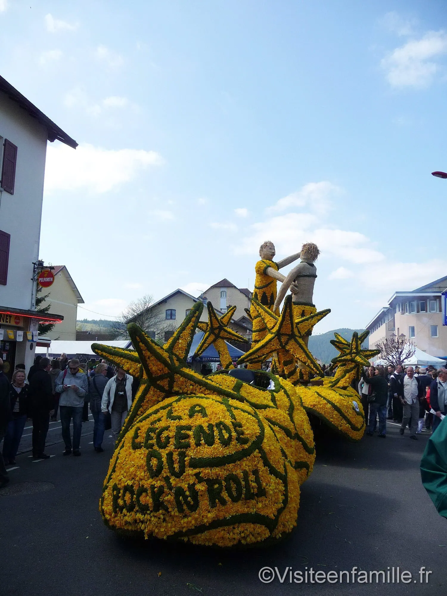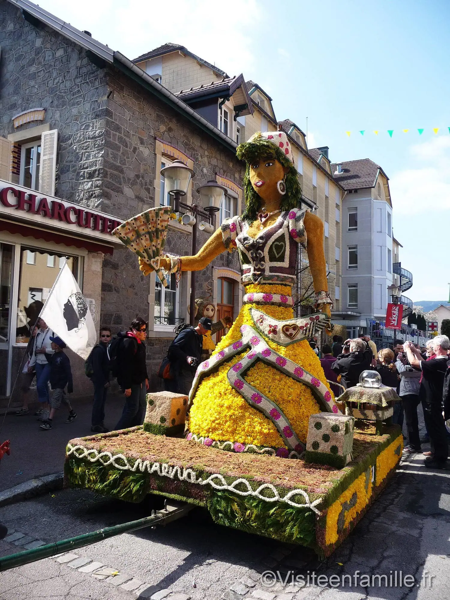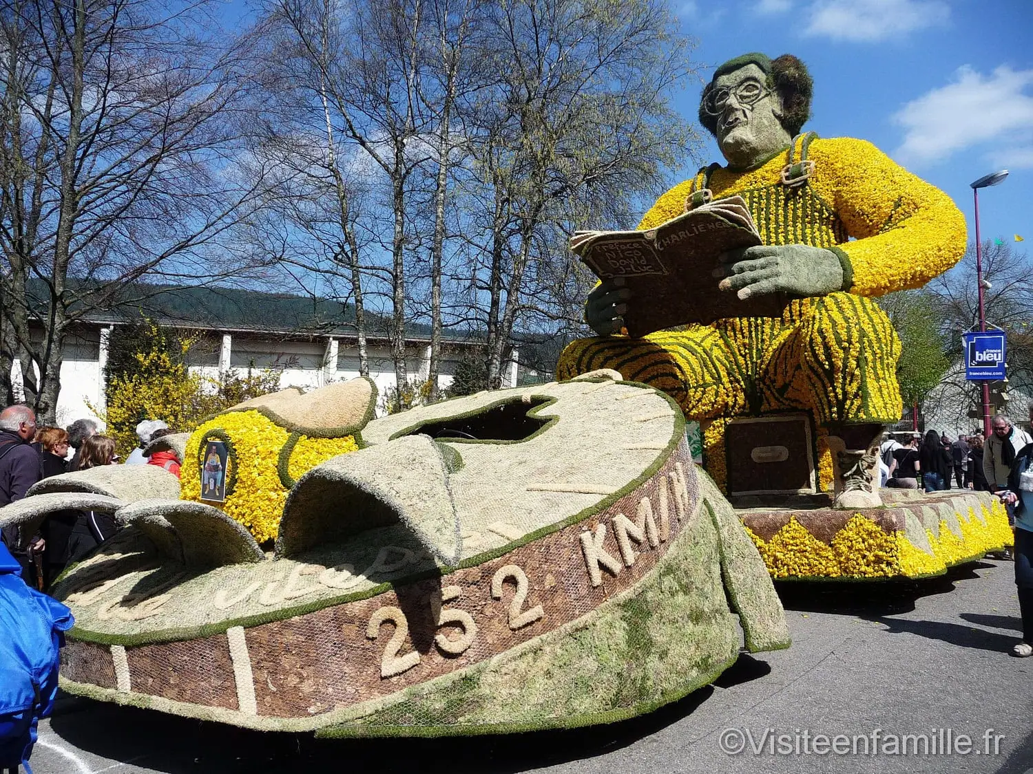 Accueil Pays France Rachel Gérardmer, la perle des Vosges, est célèbre pour son lac, pour son festival du cinéma fantastique, mais également pour sa fête des jonquilles qui a lieu tous les 2 ans en avril. Nous y avons passé un weekend en famille lors de cette manifestation en Avril 2011. Lorsque le temps est propice, c’est vraiment magnifique. La prochaine fête des jonquilles aura lieu le dimanche 9 avril 2017. La veille : le piquage des jonquilles En effet, le spectacle ne se résume pas seulement au défilé, mais il commence la veille. Tous les géromois se pressent dans les hangars pour terminer le piquage des jonquilles sur les chars : c’est la nuit du piquage ! C’est assez impressionnant. C’est la dernière phase avant le grand jour et tout le monde est en effervescence pour fignoler les structures. Bière et musique vont de pair. Devinez qui se cache derrière cet échafaudage ? Il y a des paniers remplis de cette jolie fleur jaune que l’on trouve partout dans les prés autour de Gérardmer. On prend une jonquille et on la place dans les trous sur les chars. Les jonquilles sont disposées partout sur les chars, du haut en bas. C’est la reine des fleurs lors de cette fête et elle est mise en valeur sur de nombreux chars. Même les enfants jouent le jeu et aident à préparer de jolis chars fleuris. Jour du défilé Le jour du défilé, c’est la fête. On assiste à des danses folkloriques, défilé des musiciens, défilé de dames en tenue d’époque. Ces dames ont de magnifiques robes colorées agrémentées d’un chapeau et d’une ombrelle. Vraiment très élégantes ! Ensuite vient le corso qui se présente en une dizaine de chars fleuris de jonquilles : la jonquille donne vie à tous les héros des petits et des grands. Cette année là on voit passer devant nous le géant Gulliver, Coluche, un nounours, Bob l’éponge, un crocodile, Esméralda… Certaines structures sont assez impressionnantes tant par leur taille que par leur complexité. D’autres chars sont vraiment mignons et les enfants adorent. Voir aussiAvis sur l’excursion extrême en 4*4 dans le désert de Dubaï, ça remue ! Certaines structures ne défilent pas, mais sont exposées dans la rue comme le Télétubbies. Certains chars sont vraiment très grands comme Gulliver, Coluche ou Bob l’éponge. D’autres sont plus petits. Le voilà enfin prêt pour défiler ! Le défilé se termine par le char de la reine des jonquilles et de ses dauphines. Si on a le temps et s’il fait beau, après la manifestation, on peut aller se promener autour du lac voir même faire un tour de pédalo. Les enfants adorent. Vue du lac de Gérardmer Add to Anti-Banner