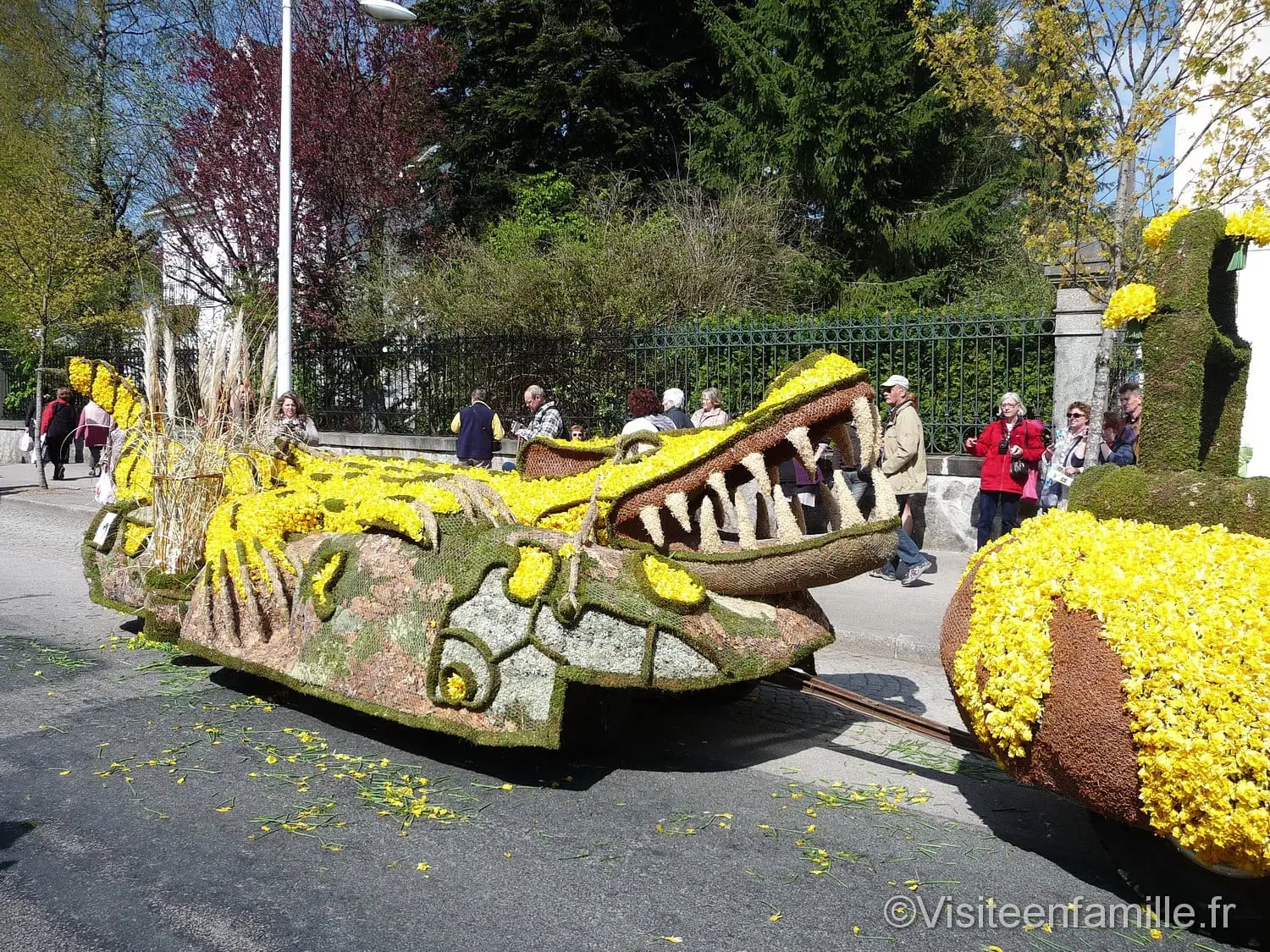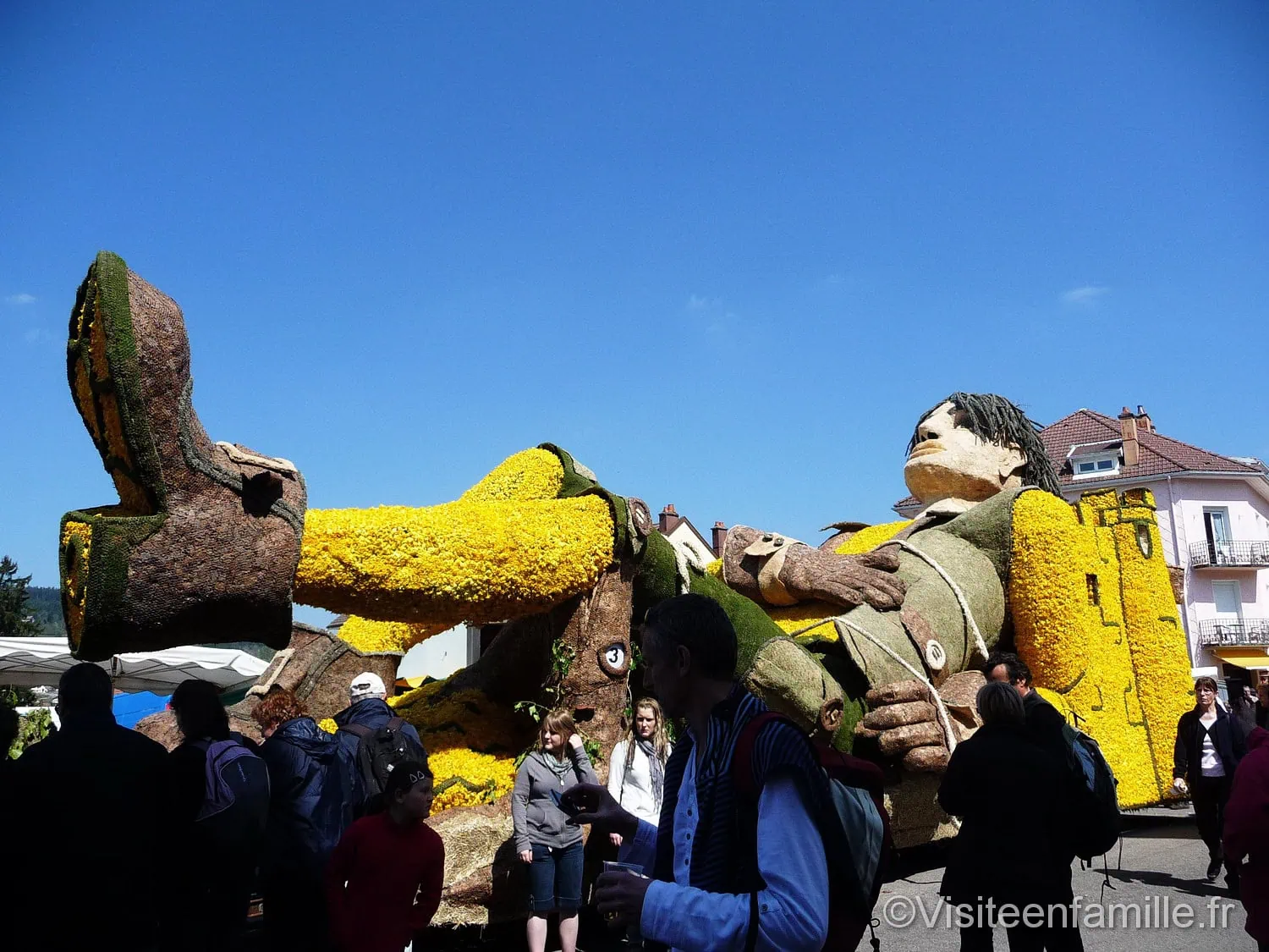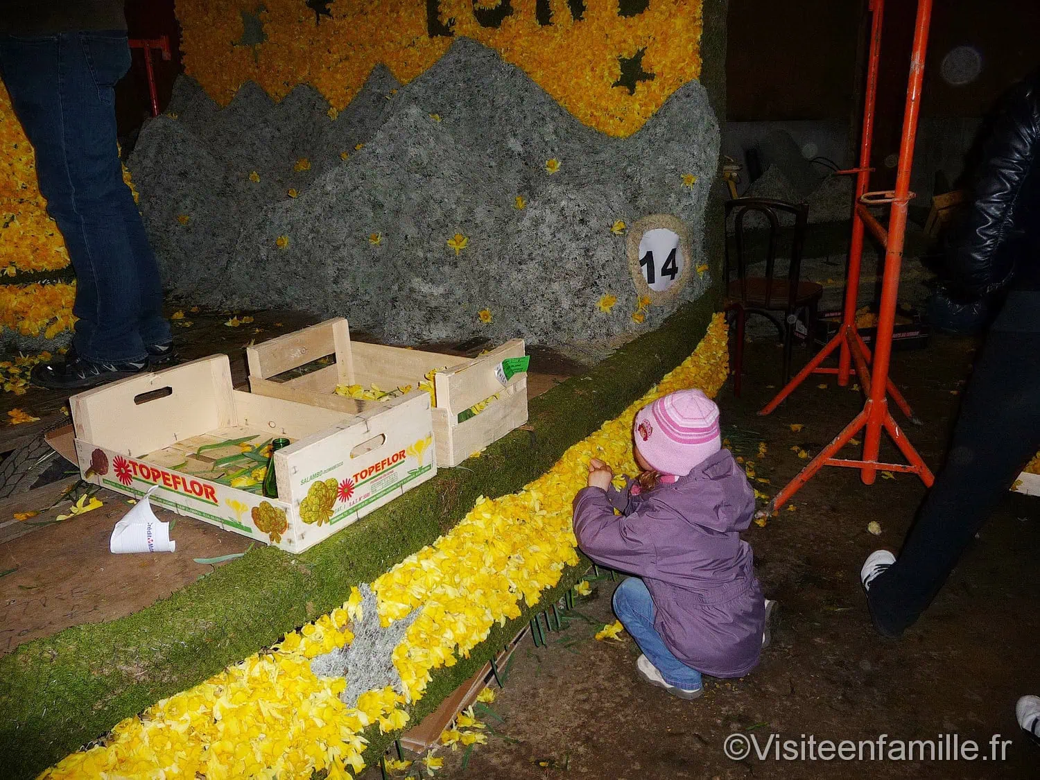 Accueil Pays France Rachel Gérardmer, la perle des Vosges, est célèbre pour son lac, pour son festival du cinéma fantastique, mais également pour sa fête des jonquilles qui a lieu tous les 2 ans en avril. Nous y avons passé un weekend en famille lors de cette manifestation en Avril 2011. Lorsque le temps est propice, c’est vraiment magnifique. La prochaine fête des jonquilles aura lieu le dimanche 9 avril 2017. La veille : le piquage des jonquilles En effet, le spectacle ne se résume pas seulement au défilé, mais il commence la veille. Tous les géromois se pressent dans les hangars pour terminer le piquage des jonquilles sur les chars : c’est la nuit du piquage ! C’est assez impressionnant. C’est la dernière phase avant le grand jour et tout le monde est en effervescence pour fignoler les structures. Bière et musique vont de pair. Devinez qui se cache derrière cet échafaudage ? Il y a des paniers remplis de cette jolie fleur jaune que l’on trouve partout dans les prés autour de Gérardmer. On prend une jonquille et on la place dans les trous sur les chars. Les jonquilles sont disposées partout sur les chars, du haut en bas. C’est la reine des fleurs lors de cette fête et elle est mise en valeur sur de nombreux chars. Même les enfants jouent le jeu et aident à préparer de jolis chars fleuris. Jour du défilé Le jour du défilé, c’est la fête. On assiste à des danses folkloriques, défilé des musiciens, défilé de dames en tenue d’époque. Ces dames ont de magnifiques robes colorées agrémentées d’un chapeau et d’une ombrelle. Vraiment très élégantes ! Ensuite vient le corso qui se présente en une dizaine de chars fleuris de jonquilles : la jonquille donne vie à tous les héros des petits et des grands. Cette année là on voit passer devant nous le géant Gulliver, Coluche, un nounours, Bob l’éponge, un crocodile, Esméralda… Certaines structures sont assez impressionnantes tant par leur taille que par leur complexité. D’autres chars sont vraiment mignons et les enfants adorent. Voir aussiAvis sur l’excursion extrême en 4*4 dans le désert de Dubaï, ça remue ! Certaines structures ne défilent pas, mais sont exposées dans la rue comme le Télétubbies. Certains chars sont vraiment très grands comme Gulliver, Coluche ou Bob l’éponge. D’autres sont plus petits. Le voilà enfin prêt pour défiler ! Le défilé se termine par le char de la reine des jonquilles et de ses dauphines. Si on a le temps et s’il fait beau, après la manifestation, on peut aller se promener autour du lac voir même faire un tour de pédalo. Les enfants adorent. Vue du lac de Gérardmer Add to Anti-Banner