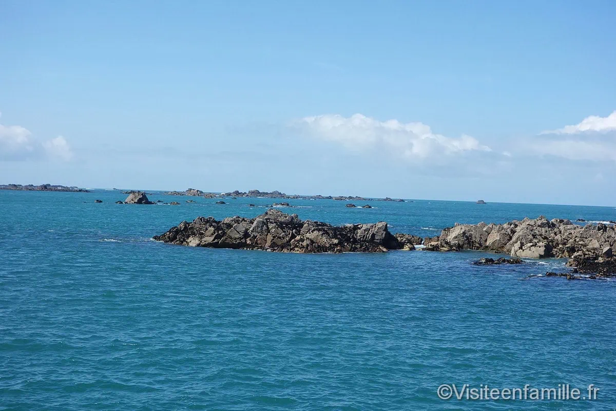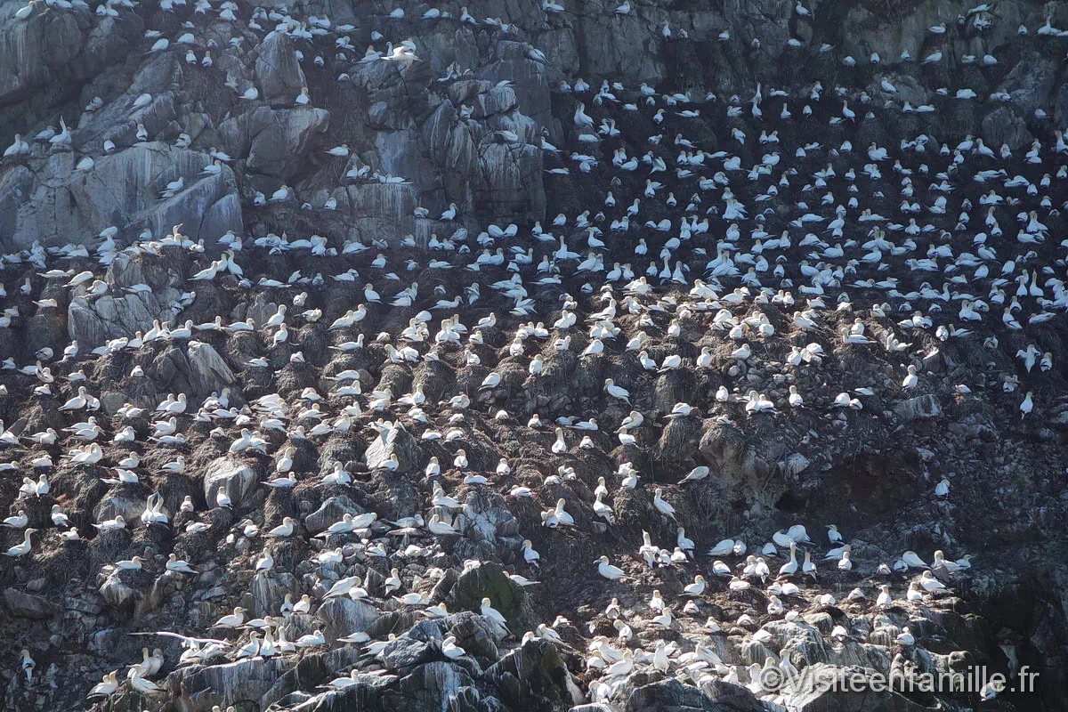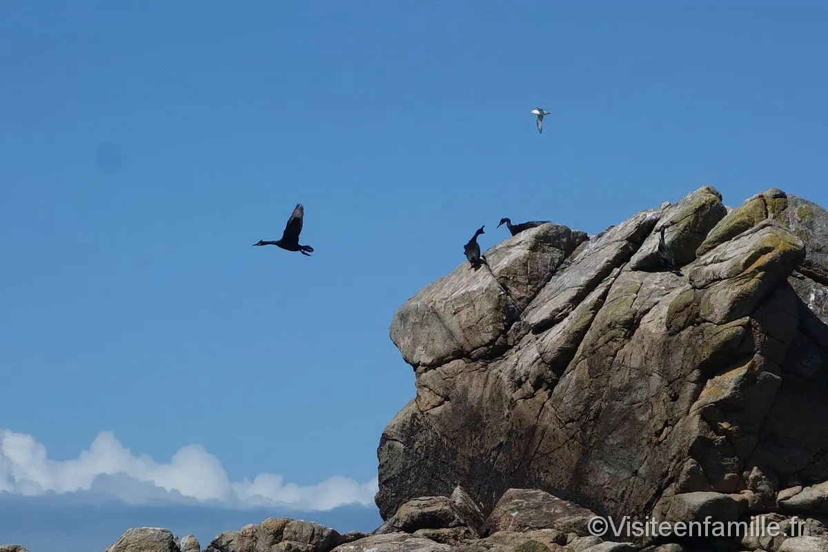 Accueil Ville/Région Bretagne Rachel Au départ de Perros-Guirec et principalement de la plage de Trestraou on peut effectuer une promenade en mer dans les 7 îles, archipel de petites îles qui est un véritable sanctuaire pour les oiseaux marins (goélands, fous de Bassan, macareux). Nous embarquons pour un tour en bateau à la découverte de ces îles qui sont principalement 5 et non 7. Nous passons donc devant l’île Malban, Bono, l’île plate, l’île Rouzic et nous nous arrêtons sur l’île aux Moines. L’île Rouzic Certaines sont accessibles, d’autres pas et restent un lieu habité uniquement par les oiseaux. C’est le cas notamment de l’île Rouzic habitée par la 2ème plus grande colonie au monde de fous de Bassan (la 1ère étant sur l’île Bonaventure au Québec, que nous avons déjà visitée il y a quelques années). Lorsque nous nous approchons de l’île Rouzic, il est impressionnant de voir tous ces fous de Bassan collés les uns aux autres. On peut dire qu’il y a du monde au m2 !! Fou de Bassan en plein vol D’autres oiseaux vus sur ces îles Discussion au sommet entre deux espèces Par contre nous n’avons pas eu la chance de voir de macareux, emblème de la ville. Ces îles sont parfaitement visibles depuis la côte de Perros-guirec. L’île aux Moines Cette escale nous permet de visiter cette petite île. Elle possède un petit port charmant puis nous montons jusqu’au phare. Un canon se trouve à proximité ainsi qu’un fort. Cette île est le paradis des lapins, ils courent partout.Voir aussiVisite Casemates du Bock Luxembourg Les lapins, les rois de l’île aux Moines L’île aux moines est la seule des 7 îles qui est ouverte au public. Le nom de cette île vient des moines cordeliers qui y vivaient du XIVè au XVè siècle. Nous suivons le chemin qui nous mène jusqu’à un ancien fort construit par un disciple de Vauban afin d’arrêter les contrebandiers mais dont il ne reste plus grand-chose. Le phare de l’île aux Moines La vue de cette île est tout simplement magnifique et nous avons eu la chance d’avoir un superbe temps. Que la Bretagne est belle !!