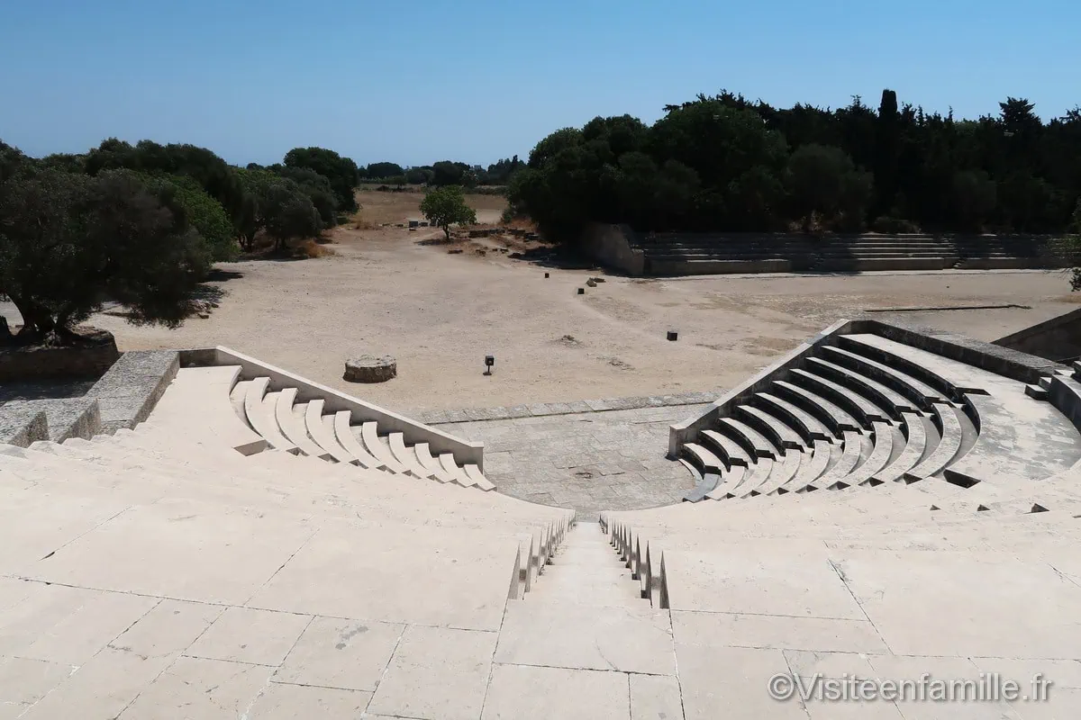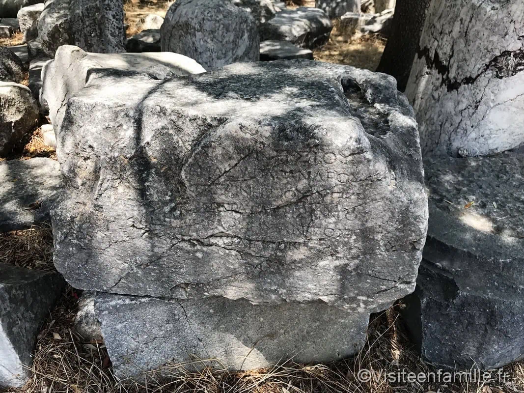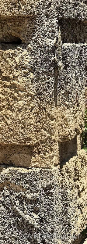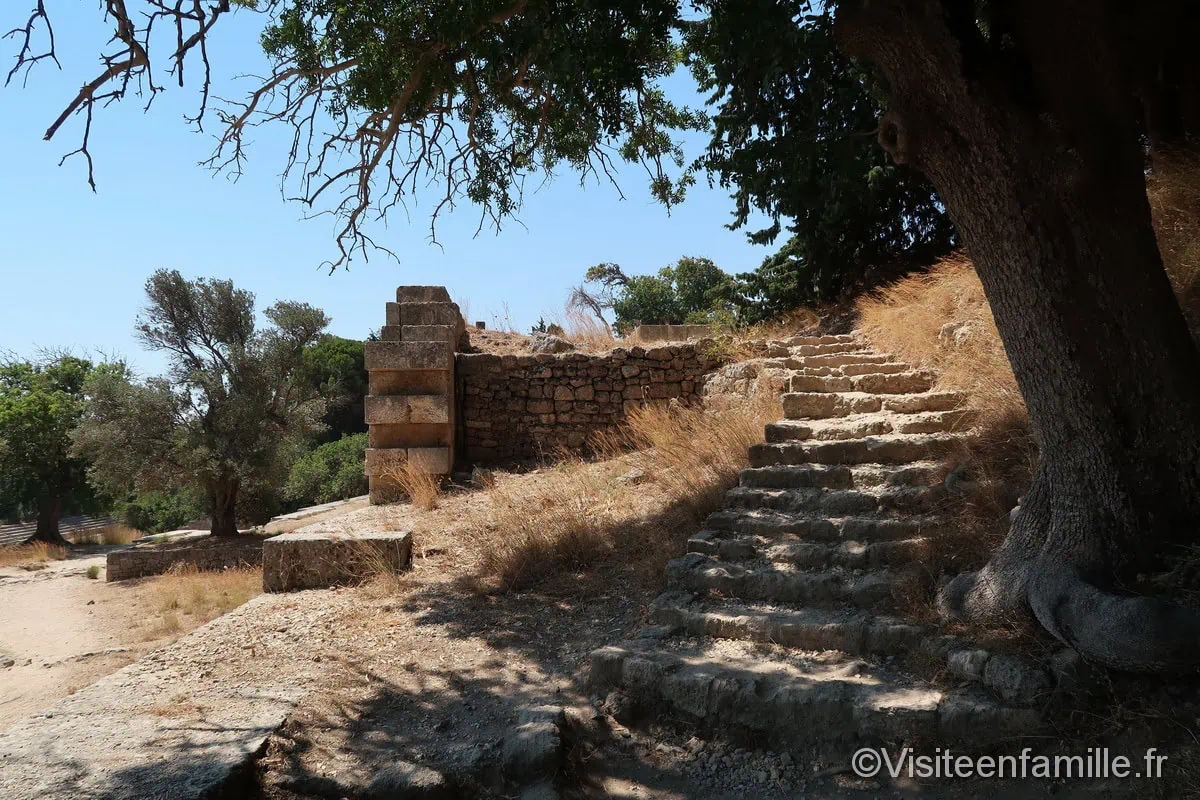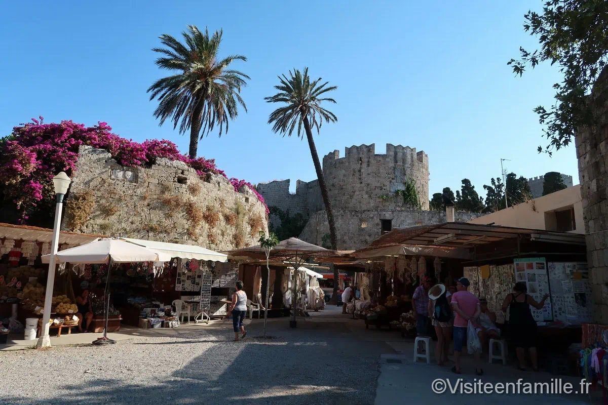 Accueil Pays Grèce Rachel Rhodes est la plus grande île du Dodécanèse et c’est la 4ème plus grande île de Grèce. Elle est bordée par deux mers : la mer Egée sur la côte Ouest et la mer Méditerranée sur la côte Est. Rhodes est également la plus grande ville de l’île. Nous étions donc obligés de la visiter. Ses eaux cristallines et ses remparts font de Rhodes une bien jolie ville à visiter. Nous y sommes allés 3 fois ; deux fois pour visiter et une fois pour prendre le bateau. Elle est connue pour son colosse qui fût une des 7 merveilles du monde et qui dominait autrefois l’entrée du port de Rhodes. Dessin du colosse réalisé par Julianne Il aurait été détruit, selon la légende, par un tremblement de terre. A priori de nombreux séismes ont eu lieu sur l’île et nous en avons vécu un le 21 juillet 2017. Il a d’ailleurs été meurtrier sur l’île de Kos. Pour se rendre à Rhodes depuis notre hôtel, le Calypso beach, à Faliraki, nous prenons le bus juste devant l’hôtel, ce qui est vraiment très pratique. Pour 6€ (2,40€ /adulte et 1,20€ pour enfant, Jeremy ne paie pas) nous allons à Rhodes. Nous nous arrêtons au terminus qui se trouve dans la vieille ville. Nous visitons alors la vieille ville et ses remparts, traversons les ruelles remplies d’échoppes de toutes sortes (accessoires de chevaliers, bars, habits, fish spa etc.). Tout nous rappelle que Rhodes dans l’Antiquité était sous l’égide des chevaliers. Sur une petite place où se trouve la fontaine d’Ipokratous, nous achetons une glace (1,30€ la boule) puis nous arrivons au port en passant par la porte du Palais des Grands Maîtres. Le port de Mandraki est le port de départ de nombreuses excursions en bateau et où l’on voit s’amarrer de somptueux bateaux de croisières et des yachts. Il est remarquable par les deux animaux gardant l’entrée du port (une biche et un cerf) et par les 3 moulins à vent. Ces deux colonnes se dresseraient à l’endroit où il y aurait eu le colosse. Nous passons devant les 3 moulins puis arrivons jusqu’à la statue de la biche qui fait face à celle du cerf. Au bout de la jetée se trouve le fort Saint Nicolas où flotte le drapeau grecque. C’est vraiment un joli port où se côtoient les bateaux des plaisanciers, bateaux de croisière, bateaux d’excursions et bateaux-commerce (éponges, coquillages). Ensuite nous passons devant les bateaux pour retourner vers le marché dans le bâtiment à architecture musulmane. Rien de bien intéressant là dedans et on se fait interpeller pour manger ou boire un coup. Nous passons rapidement notre chemin. Dans la nouvelle ville, nous décidons de tester le Throne of Helios, un cinéma 9D. Voir notre avis sur Throne of Helios C’est tout pour notre première visite de la jolie ville de Rhodes. Mais comme nous n’avons pas vu l’ancien acropole et le stadium qui se trouvent à environ 4 km de là, nous nous promettons de revenir une prochaine fois pour voir cela. Nous revenons donc à Rhodes pour visiter l’ancien Acropole. Cette fois nous ne nous arrêtons pas au Terminus mais au niveau des remparts car nous devons nous diriger vers l’Ouest pour nous rendre sur le Monte Smith. Pour ceux qui ne veulent pas marcher, il est possible de prendre un bus Hop and Off où on peut s’arrêter à divers endroits de la ville. Nous trouvons cela trop contraignant et préférons le faire par nos propres moyens. Depuis cet arrêt de bus, nous avons environ 20 minutes de marche pour atteindre notre but. Le site antique comprenant l’ancien stadium, un théâtre et le temple d’Apollon forme l’ancien acropole et date de la Grèce antique. Il est gratuit et libre de visite. A l’entrée du site de grosses pierres jonchent le sol et certaines portent des inscriptions. Des inscriptions en grecque ancien sont encore lisibles sur les pierres. Le Stadium le Théâtre Le temple d’Apollon Dommage que l’édifice était en rénovation. et nous avons également vu les habitants des lieux : Voir aussiNotre séjour de 2 nuits à l’hôtel Palace Downtown Dubai Saurez-vous distinguer les deux lézards qui se cachent sur cette photo ? Notre tour de Rhodes s’achève ainsi mais il y a encore bien d’autres magnifiques endroits à découvrir sur cette île.