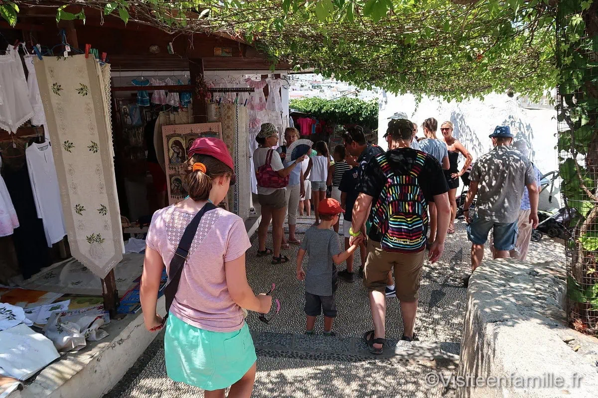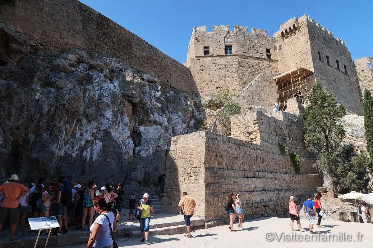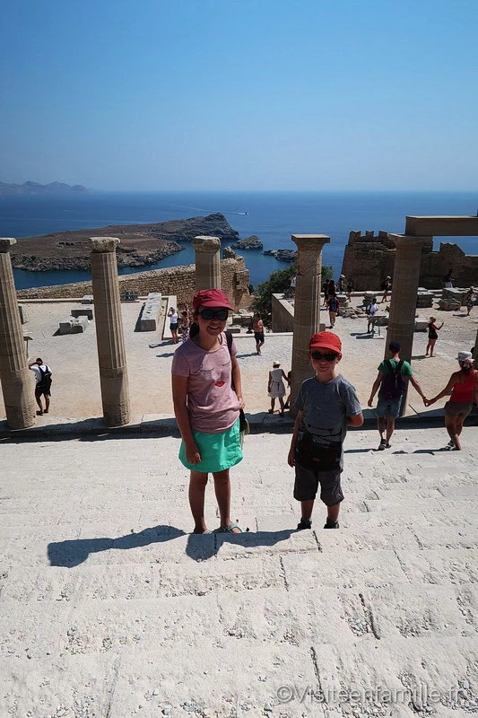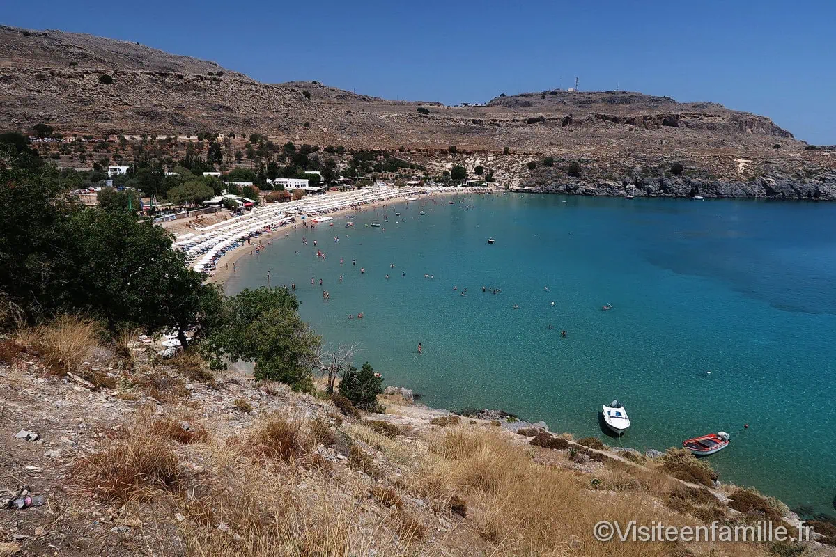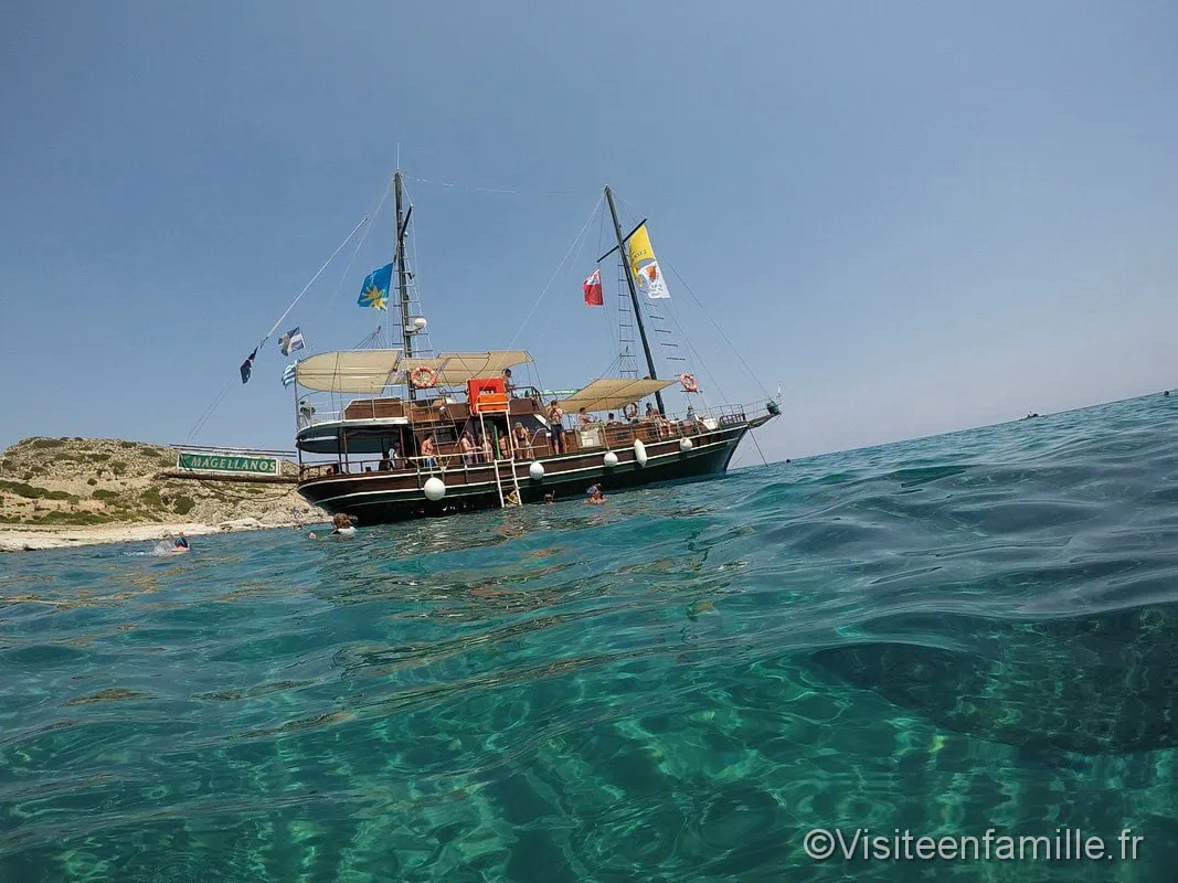 Accueil Pays Grèce Rachel Cette excursion est sans aucun doute la plus belle que nous ayons faite. Bien sûr, tout est subjectif mais nous avons beaucoup apprécié la croisière entrecoupée de baignades dans une eau cristalline et la visite de l’acropole de Lindos même si la montée fût rude sous un soleil de plomb. Tout d’abord, réveil matinal pour un départ devant notre hôtel à 7h55 en bus (c’est quand même très tôt et dur dur pour les enfants). Arrivés au port de Kolymbia, nous embarquons à bord du bateau pirate le Magellanos. Petite chapelle de Kolymbia Pêcheurs Lindos Arrivée au port de Lindos vers 10h. Nous avons du temps libre jusque 12h45. Nous pouvons flâner dans les commerces, sur le port ou monter et visiter l’Acropole. Nous décidons de visiter l’Acropole. Au port, de nombreux ânes attendent les touristes. Nous décidons de louer deux ânes pour les enfants (8€ par enfants) et nous montons à pied. La montée se fait au pas de course, ce que nous regrettons. En effet, notre loueur était jeune et donc il pense ‘rentabilité’ : plus l’âne monte vite, plus il redescend vite pour reprendre d’autres clients. Nous sommes un peu déçus et nous, qui montions à pied, arrivons en haut dégoulinant de sueur et crevé. Pas super agréable car il faisait extrêmement chaud. D’autre part, nous avons été étonnés de voir des gens corpulents sur les ânes. Cela ne devrait être admis que pour les enfants. Pauvres ânes ! Il fait très très chaud en haut de l’Acropole et la visite est assez chère, 12€ par adulte et gratuit pour les enfants. Les ruines de l’Acropole La visite est intéressante et la vue d’en haut magnifique. Nous redescendons par les échoppes et les vendeurs de dentelles et de souvenirs en tout genre. Pendant la descente nous prenons le temps d’admirer le paysage, chose que nous n’avions pas pu faire lors de la montée. Il faut faire attention sur tout le site de Lindos car les pierres sont polies et glissantes. Voir aussiLe Luxembourg offre un bon d’achat pour une nuit dans un hôtel L’aller-retour vers l’acropole nous a donné soif et, arrivés au port, nous nous installons dans un bar pour boire un coup en attendant l’heure du départ du bateau. Croisière Pour le 1er arrêt baignade, nous n’allons pas très loin puisque le bateau jette l’ancre dans la baie de Lindos. Après avoir récupéré un gilet de sauvetage pour Jérémy, nous nous jetons tous à l’eau. En effet, pour les personnes ne sachant pas très bien nager, il vaut mieux utiliser un gilet de sauvetage ou des frites (prêtés par le capitaine) car nous n’avons pas pied. De retour sur le bateau pour 50 minutes. Le capitaine donne à tout le monde un bout de pastèque et met de la bonne musique des années 2000. Ambiance assurée à bord et le temps passe agréablement. Puis 2ème arrêt baignade : Puis 3ème et dernière baignade à Tsambika bay. Magnifique. Et happy hour sur les cocktails au bar du bateau. Retour au port de Kolymbia à 16h et arrivée à l’hôtel a 16h30.
