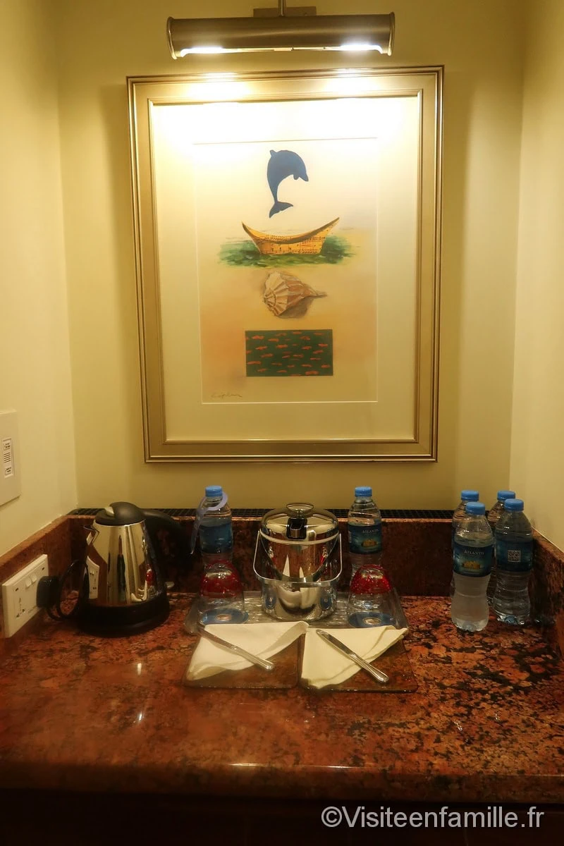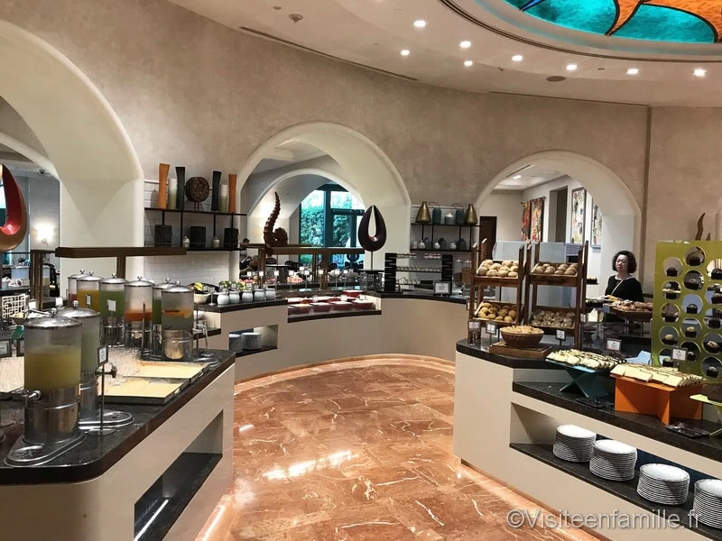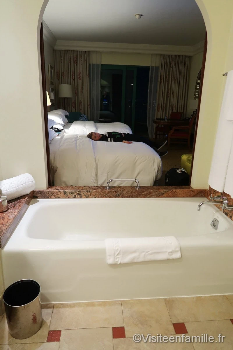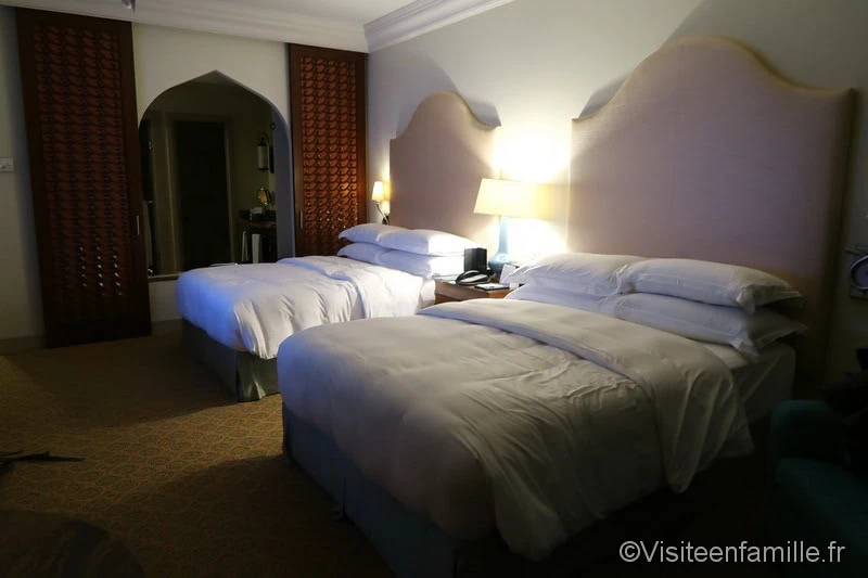Accueil Pays Rachel Avis sur l’hôtel Atlantis The Palm Dubai Las de la grisaille, du froid de Février, cette année nous avons opté pour des vacances d’hiver au soleil. Notre destination : Dubaï et plus exactement à l’hôtel Atlantis The Palm Dubai. SommaireAvis sur l’hôtel Atlantis The Palm DubaiOu se trouve dubai ?Quel hôtel choisir à Dubaï ?La parking de l’AtlantisL’entrée de l’hôtel Atlantis The Palm DubaiL’intérieur de l’AtlantisLes couloirs de l’AtlantisLes fontaines de l’AtlantisLes piscines de l’AtlantisLa plage de l’AtlantisClub ImpérialNotre chambre à l’AtlantisLe petit déjeuner à l’AtlantisConclusion et avis sur l’Atlantis de DubaiNotre vidéo de l’hotel Atlantis The Palm de DubaiNotre avis sur l’hotel Atlantis de Dubai Ou se trouve dubai ? Nous nous envolons donc pour Dubai une destination située dans les Emirats arabes Unis située à 6h40 de Paris. Cela donne environ 5 245,95 km de trajet. Dubai se trouve prêt de l’Iran ou encore du Quatar et de Oman. Pourquoi Dubaï ? Ce n’est évidemment pas pour son histoire ou sa culture car finalement Dubaï est une mégalopole très récente sortie de terre dans le désert grâce à l’argent de riches émirs. Nous avons choisi cette destination car elle allie à la fois de multiples activités pour les enfants et les parents et c’est un endroit très sécuritaire à visiter. C’est aussi un endroit qu’il fait bon visiter par cette période de l’année. En effet, la saison touristique haute va d’octobre à avril. Après avril il fait très, trop chaud pour nous. En février on a donc un temps et une température idéale, de 24 à 30 °C. Une mosquée côtoyant un building Quel hôtel choisir à Dubaï ? Notre séjour de 6 jours se déroule en deux temps : nous décidons de passer 4 nuits à l’Atlantis, ce fabuleux hôtel 5* qui est en même temps un parc d’attraction aquatique, un dolphinarium et un aquarium géant puis 2 nuits dans le Dubaï downtown, au centre-ville à côté de la Burj Khalifa, la tour la plus haute du monde. Les distances à Dubaï sont grandes et comme nous n’avions pas envie de passer notre vie dans les taxis et que l’on souhaitait un peu visiter nous avons choisi cette solution. Commençons notre visite par l’Atlantis. Dès notre arrivée à l’Atlantis, nous avons été agréablement surpris et épatés par ce magnifique hôtel. C’est un vrai hôtel de princesses de contes de fées, un hôtel des mille et une nuits. Il est situé sur le palm de Jumeirah. Pour accéder au lopin de terre sur lequel se dresse l’Atlantis, une route de 1 km passe sous la mer ce qui lui donne l’aspect d’une île vue du dessus. Cet hôtel est un parc d’attraction à lui tout seul et mérite amplement une visite. Il a une forme bien caractéristique et il est composé de deux tours : la tour Est et la tour Ouest. La parking de l’Atlantis Hotel Atlantis Dubai photo Sur le parking de l’hôtel Atlantis trônent de magnifiques voitures comme des Lamborghini, des Ferrari, ou encore des Rolls Royce dans un autre style. On cherche notre future voiture On hésite… On hésite toujours… Celle-ci ou celle-là ? … Bon finalement, comme nous n’étions pas d’accord nous sommes partis en hésitant encore. Nous allons réfléchir à la question 🙂 L’entrée de l’hôtel Atlantis The Palm Dubai Le tapis rouge placé devant l’entrée nous amène dans un immense hall où se dresse en son milieu une magnifique et imposante sculpture multicolore en verre. Tout est luxe et raffinement. Le hall d’entrée L’intérieur de l’Atlantis Dans cet hôtel, le décor nous fait penser au monde marin avec coquillages de toutes sortes. A l’intérieur de l’hôtel on découvre un immense aquarium dans lequel toutes sortes de poissons mais aussi des raies et des petits requins évoluent. Quiconque visite l’hôtel peut voir gratuitement ces aquariums. Tout dans cet hôtel nous rappelle la cité perdue de l’Atlantide. Le décor de l’hôtel le prouve avec ses coquillages de différentes formes que l’on trouve sur les colonnes et jusque dans les fontaines. Les couloirs de l’Atlantis Ces couloirs mènent aux deux tours de l’hôtel. Les fontaines de l’Atlantis On y trouve également l’aquarium The lost chambers. Cet aquarium est gratuit pour tous les résidents de l’hôtel mais payant pour les visiteurs. On y trouve de nombreux restaurants dont certains très raffinés (le chef anglais Gordon Ramsay y a un restaurant) mais également un restaurant avec une vue sous-marine. Il s’agit du restaurant Ossiano. Restaurant Ossiano dubai Cet hôtel bénéficie aussi d’une plage privée de sable fin donnant sur le golfe. La piscine de l’hôtel est gigantesque et très bien gardée (en effet, des secouristes sont présents tous les 2 mètres pratiquement). Les piscines de l’Atlantis Un petit selfie dans la piscine La plage de l’Atlantis L’Atlantis bénéficie d’une plage privée. La plage Nasimi est la plus populaire du Palm Jameirah. La plage réservée au Club Impérial Une partie de la plage est réservée aux personnes faisant partie de l’Imperial Club. Un Aquapark ‘Aquaventure’ fait partie de cet immense complexe. On y trouve également le SeaLion Point, le Dolphin Bay un peu plus loin (où l’on peut rencontrer des dauphins, nager avec…). Pour y aller, des voiturettes faisant la navette peuvent nous y emmener gratuitement. C’est vraiment sympa et ça a beaucoup plu aux enfants. Vue de l’Atlantis Vue de devant Club Impérial Nous avions réservé une chambre dans le Club Impérial et je dois avouer que c’était bien pratique. En effet, nous avions le trajet aéroport-hôtel compris dans l’offre et nous avons un service de conciergerie privilégié et personnel. Nous avons pu manger au lounge quand nous étions sur place. En effet, nous avons réservé une chambre par le club impérial ce qui nous donnait certains priv