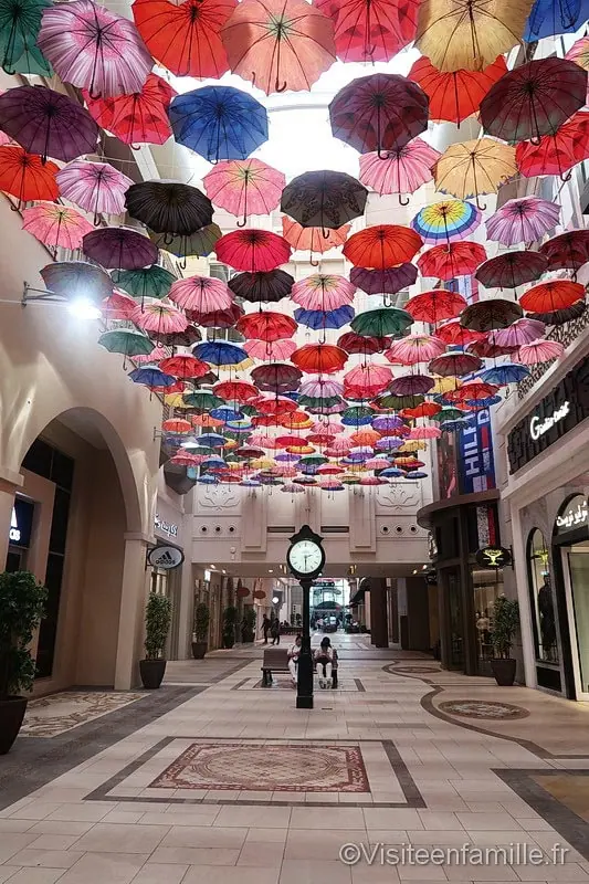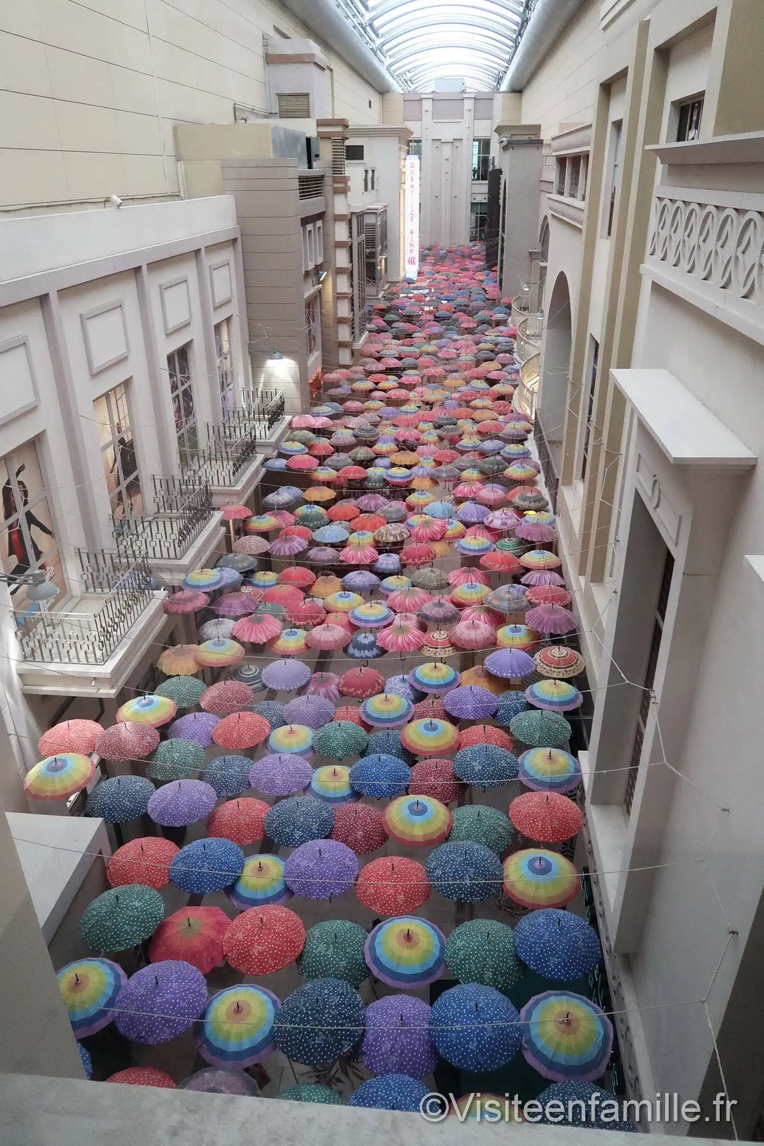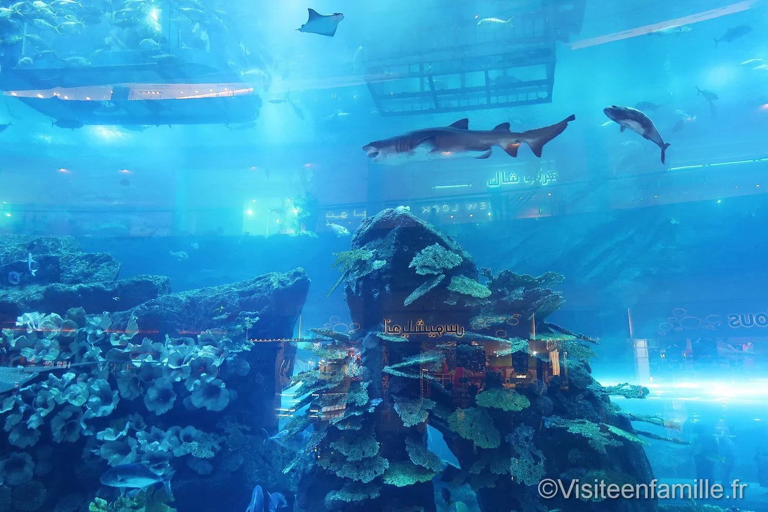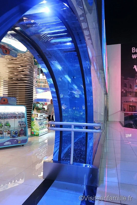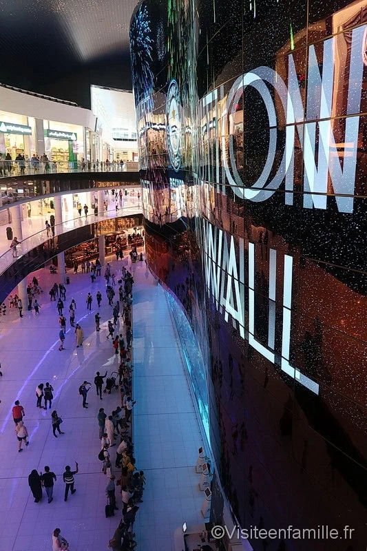 Accueil Pays Rachel SommaireI love Dubaï, de jour comme de nuitLe Dubaï MallDubaï aquariumPatinoireCascadeDes magasins de luxeLe SoukL’allée des parapluiesBoutique de bonbonsLes fontainesNotre vidéo de la visite du Dubai Mall :Notre vidéo des fontaines de Dubai sur O Mio Babbino Caro – Gianni Schicchi : I love Dubaï, de jour comme de nuit Le ‘I love Dubai’ se situe devant les fontaines, au pied du Dubaï mall (The Dubai mall). Joli pour faire de belles photos. Le Dubaï Mall Après notre visite de la Burj Khalifa, nous décidons de visiter le Dubaï Mall. Ce mall est gigantesque et parait encore plus grand que le Mall of the Emirates. Entre boutiques de luxe, de divertissement et restaurants, on trouve tout dans cette surface commerciale de 1,1 million de m2; ce qui fait du Dubai Mall le plus grand des centres commerciaux des Etats arabes unis, voire du monde. Il se situe aux pieds de la Burj Khalifa, la plus haute tour du monde. D’ailleurs pour entrer dans la Burj Khalifa, il faut passer par le Dubaï mall. On va vous expliquer quoi faire au Dubai mall et nous vous conseillons de prévoir une journée complète. Dans cet immense centre et devant tant de hauteur, nous nous sentons vraiment petits. Il est conçu sur plusieurs étages avec des zones bien distinctes. Il y a une zone totalement dédiée aux enfants avec un hall Sega et Kidzania, une zone de loisirs destinée aux enfants (et payant) présentant un gros avion. Ici, les enfants peuvent faire comme les adultes en devenant ce qu’ils veulent. Nous n’avons malheureusement pas eu le temps d’y aller. On y trouve également un complexe de salles de cinéma énorme, une boutique Lego. Petite pose photo avec les lego friends Dark Vador en Lego Chut ! Deadpool et les gardiens de la galaxie ne sont pas loin. On trouve aussi des attractions pour les adultes comme ici Hysteria (eh oui, il n’ y a pas de raison que seuls les enfants s’éclatent). Il s’agit d’une attraction dans le genre du Manoir de Paris. Le Dubaï Mall est tellement grand qu’il comprend un aquarium ,qui est l’un des plus grands du monde, un Underwater zoo et une patinoire olympique. Dubaï aquarium Il expose la seconde plus grande vitre au monde. Vitre géante, écrans géants, décidément tout est dans la démesure à Dubaï. Il est même possible de plonger dans une cage pour être face aux requins. Vu que nous avions déjà une rencontre avec les requins à l’hôtel Atlantis, nous n’avons pas voulu recommencer ici mais cela sera sans doute pour la prochaine fois. Requins, raies, poissons de diverses espèces et plongeurs se côtoient. Le tunnel de Underwater Zoo permet aux spectateurs de se retrouver sous la mer et de voir les poissons évoluer au-dessus d’eux. Patinoire Une patinoire olympique La patinoire avec son écran géant à LED. Cascade Au Dubaï Mall, on peut y voir une énorme cascade présentant des plongeurs argentés. Il ne s’agit pas seulement d’une cascade mais d’un mur de cascades. Entrée de The Village Ce salon de thé-café est plutôt atypique. Il représente une chambre d’enfant avec des lits, des caisses de toutes les couleurs et des boites de céréales. Des magasins de luxe Une boutique de la Scuderia Ferrari que l’on voit de loin avec sa devanture rouge. Une boutique sur le célèbre pantin de bois de Disney. Toute une zone est également dédiée aux boutiques des créateurs de mode. On trouve donc la boutique Stella McCartney, etc. La boutique Apple est énorme et sur 2 étages. Le balcon de chez Apple est un lieu stratégique car il est situé juste au-dessus des fontaines. Certaines personnes font la queue pour pouvoir accéder au balcon. L’espace est épuré présentant une multitude de produits de la marque à la pomme. Cet apple store permet de faire des formations sur des logiciels, d’acheter les derniers produits comme l’Iphone, l’Ipad, … Boutique de geeks fans de super-héros On y trouve des tee-shirts, des pulls sur les super-héros. Assez cher tout de même. Des poissons dans la vitrine Cette boutique de jouets est exceptionnelle pour sa devanture. En effet, la vitrine de la boutique fait environ 50 cm de large et a des hôtes plutôt remarquables : des poissons. Au départ, je pensais que ces poissons étaient en plastique mais non ces poissons plats vivent bien dans la vitre de ce magasin. Nous n’avons pas eu le temps de faire les boutiques mais on retrouve plus ou moins les mêmes enseignes que chez nous comme les galeries Lafayette, H&M, Zara etc. en plus des boutiques de luxe. Toute une zone est dédiée à la nourriture. On y trouve un Mc Donald, un Burger King, des fast food chinois, indiens, etc. Nous avons mangé au Mc Do et il n’est vraiment pas cher. Si la vie est relativement chère à Dubaï, vous pouvez manger au Mc Do pour presque rien. Nous avons pris 4 menus, nous avons une facture très longue et pourtant on a payé que 65 AED ce qui correspond environ à 12 euros. Il faut beaucoup de temps pour visiter ce centre commercial géant. On fait pas mal de kilomètres. Le Souk Au hasard de nos déambulations dans le Mall, on se retrouve face à un squelette de dinosaure à l’entrée du souk. Un dinosaure au MallVoir aussiUne nuit insolite au Parc de Sainte-Croix The Souk L’allée des parapluies Vue de dessus Les parapluies vue de dessous Boutique de bonbons Dans le Dubaï Mall on peut y trouver une énorme boutique de bonbons (la boutique Candylicious). Nous n’avons jamais vu une telle boutique et nous y avons passé beaucoup de temps. Cette boutique est située face à l’aquarium et nous étions impressionnés par sa taille. Les employés confectionnent des bonbons sous nos yeux gourmands. Impossible pour nous de repartir de là bredouille. Nous avons donc acheté quelques bonbons. Les fontaines En bas du Dubaï Mall se trouvent les fameuses fontaines dansantes. Il s’agit d’un ensemble de fontaines situé sur un lac artificiel au pied de la Bur