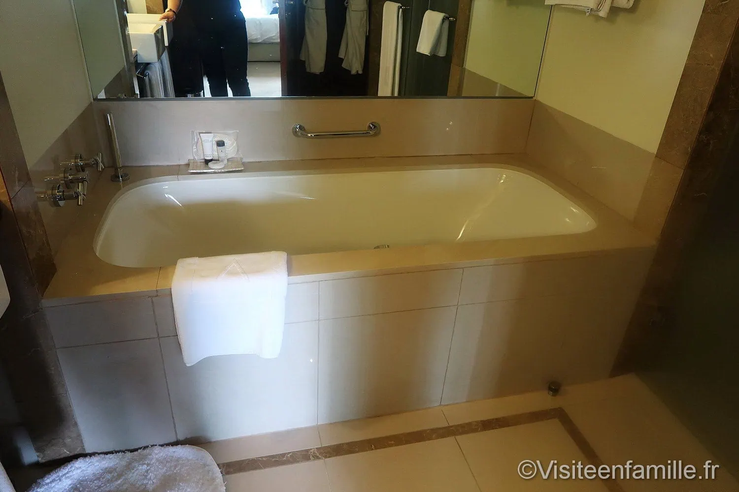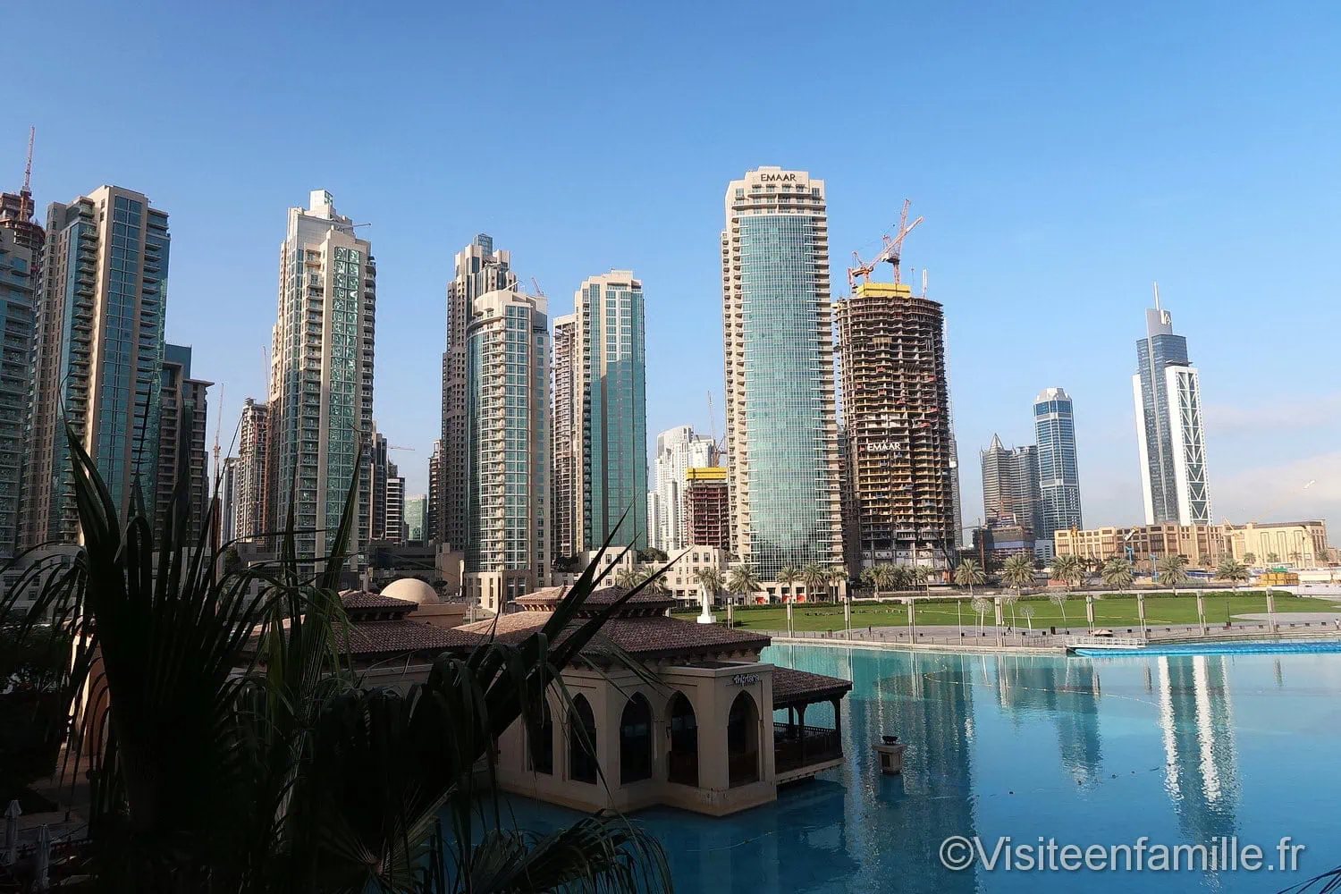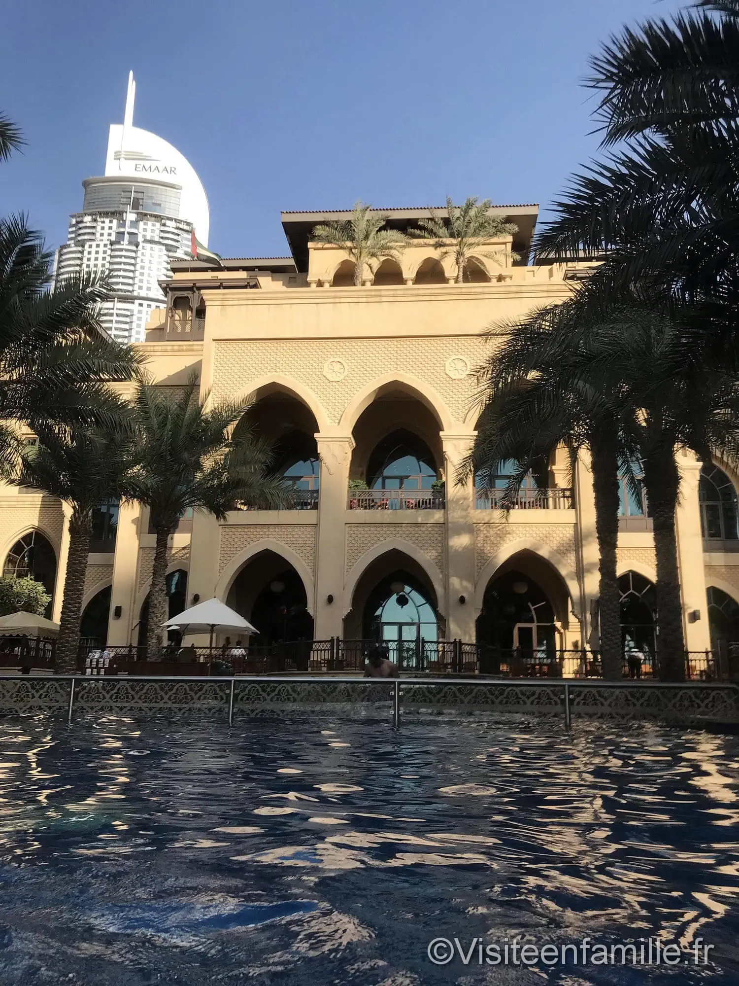 Le Palace Downtown bénéficie d’une belle piscine pour un hôtel situé au centre-ville. Elle n’est pas très grande mais elle est idéalement située avec vue sur la Burj Khalifa. Par contre étant donné qu’elle est entourée de buildings, le soleil est vite caché dans l’après-midi. Nous avons pu en profiter un après-midi pour faire une petite pause entre deux visites. Les enfants étaient ravis de pouvoir piquer une tête dans la piscine. Par contre, l’ambiance ici était plus cosy et on ne voyait pas trop d’enfants rire et s’amuser.