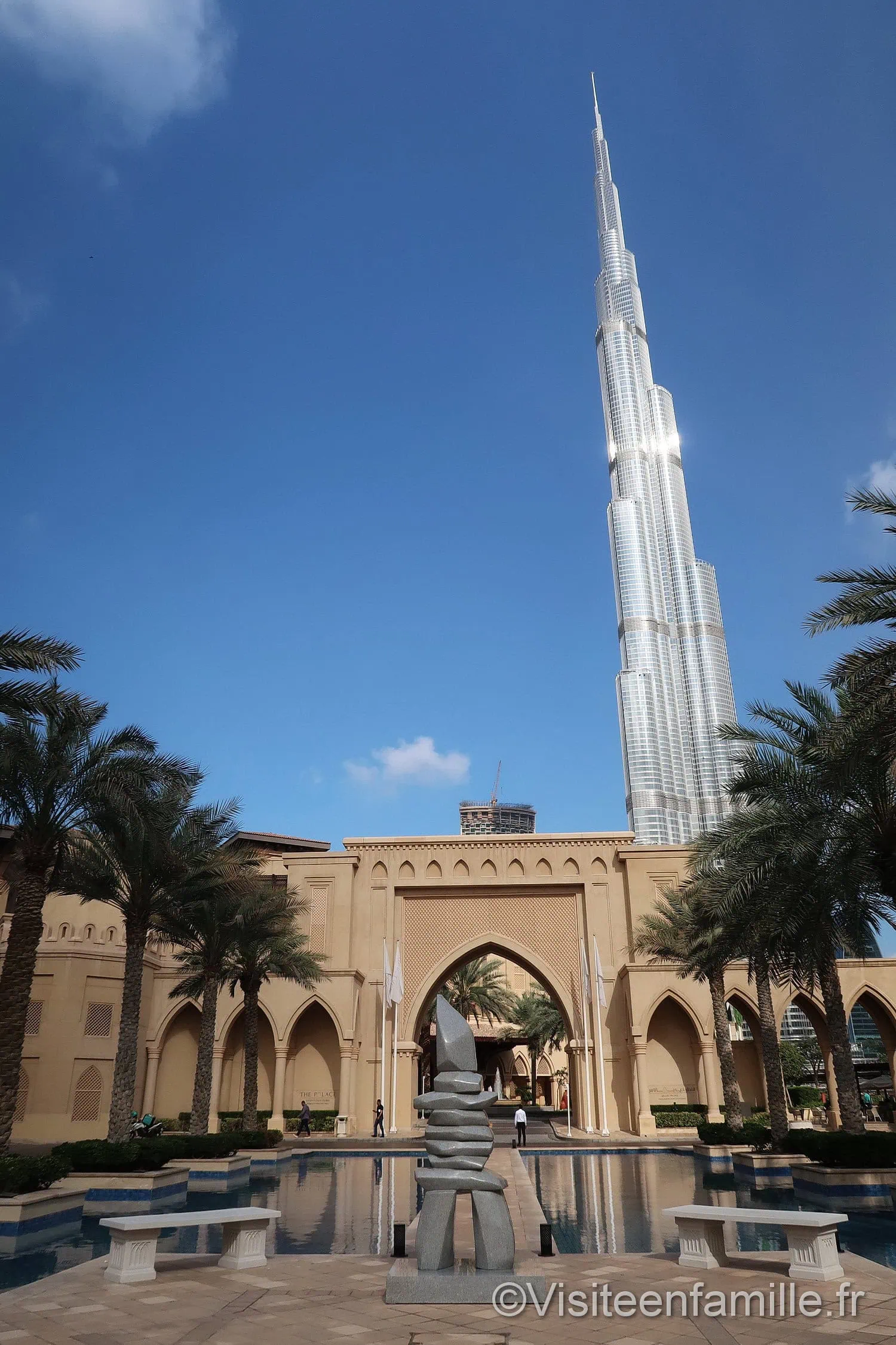C’est avec un petit pincement au cœur que nous quittons l’hôtel Atlantis pour nous diriger vers le centre-ville. Nous avons réservé 2 nuits au Palace Downtown situé juste à côté du Dubaï Mall, des fontaines et de la Burj Khalifa. Cet hôtel est un magnifique hôtel 5* dans un tout autre style que celui que nous avons vu précédemment. Celui-ci est dans un style arabe traditionnel et c’est l’un des mieux placés au centre de Dubaï.