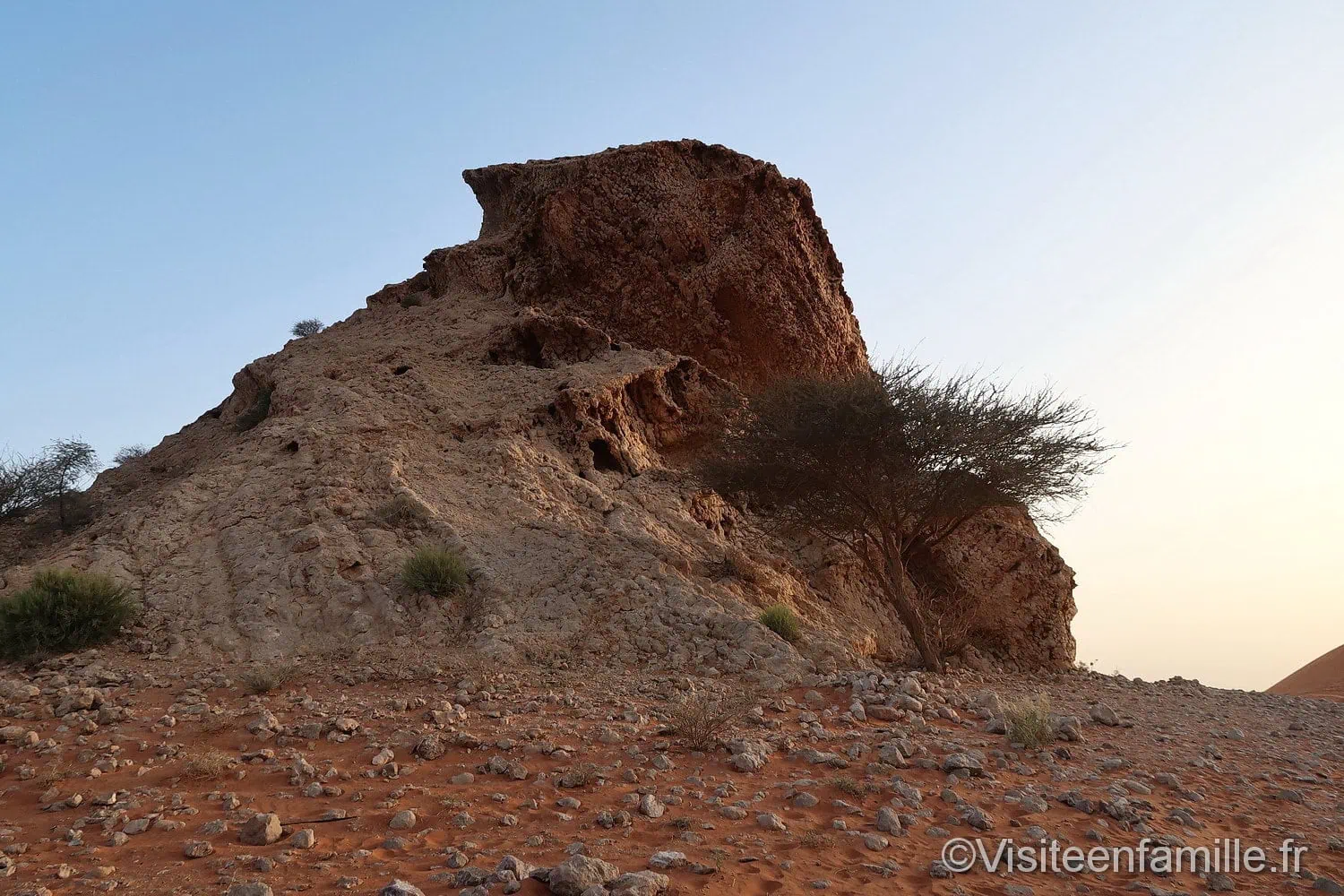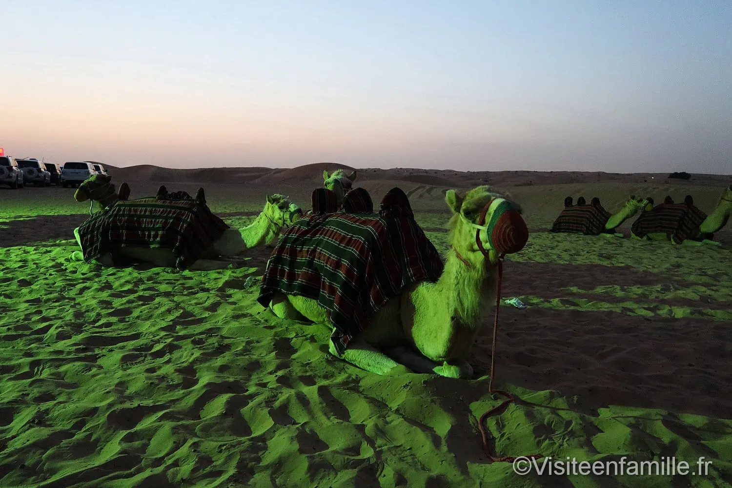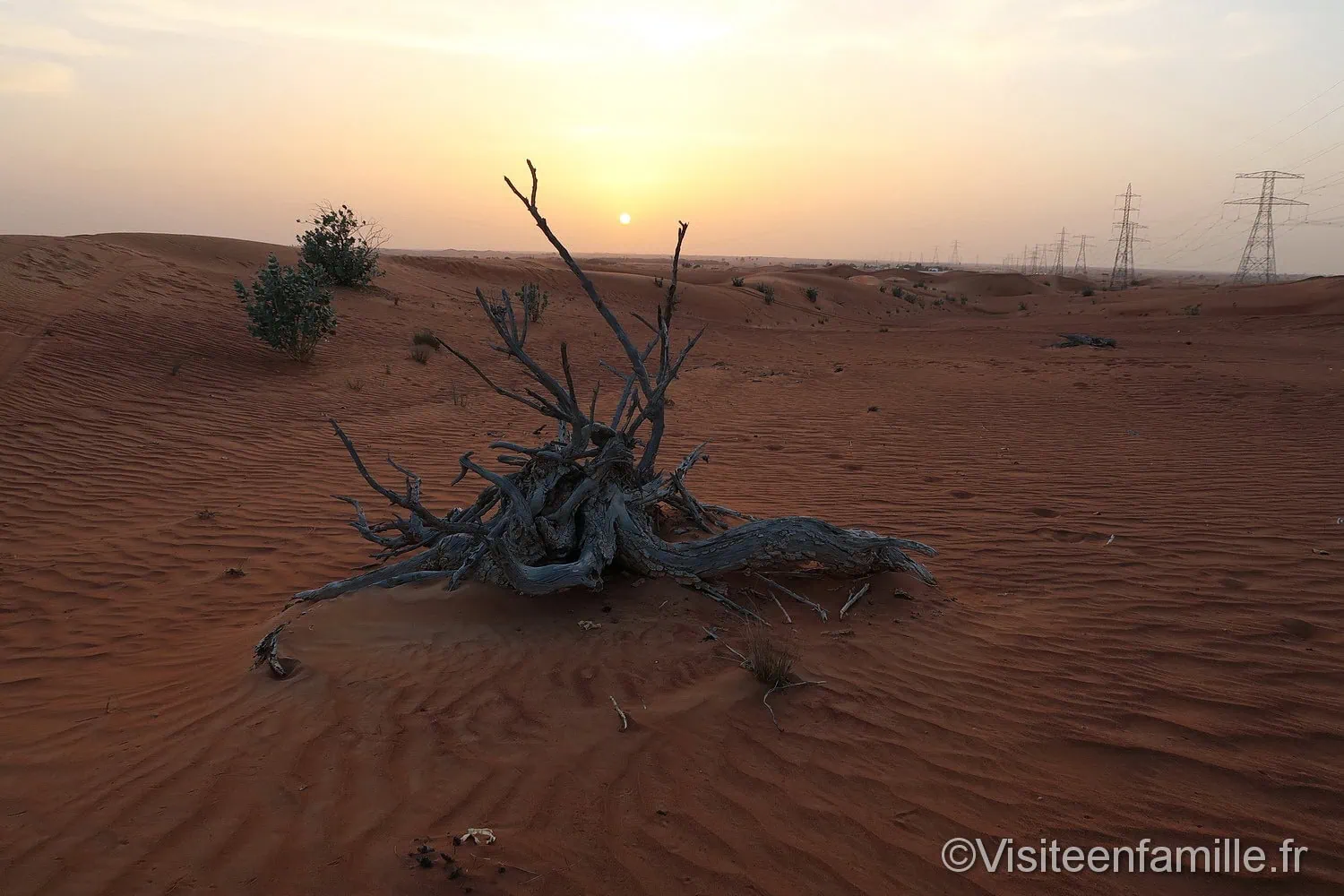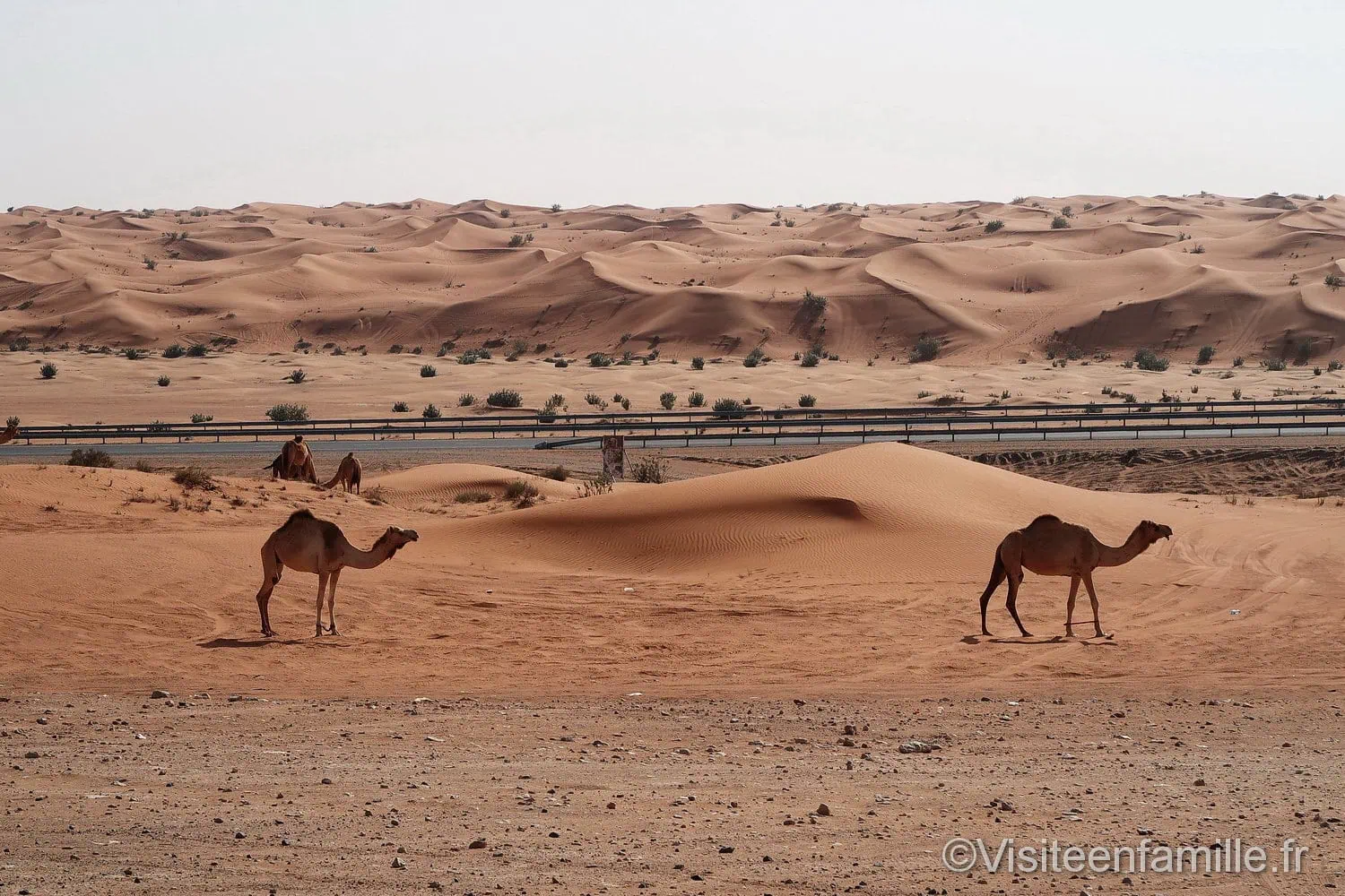Accueil Pays Dubaï Rachel Safari dans le désert de Dubaï jusqu’à Camel rock et Fossil rock SommaireSafari dans le désert de Dubaï jusqu’à Camel rock et Fossil rockTour en quad dans le désertSafari en 4*4Camel rockSandboardFossil rockTour en chameauRepas et spectacleNotre vidéo de notre journée Fossil and camel rocks extreme safari Nous avons fait cette excursion extrême en 4*4 dans le désert avec deux enfants (11 et 7 ans). C’était génial. Notre chauffeur Ash de la société OceanAir travels est un très bon pilote dans les dunes du désert. De nombreux commentaires sur Tripadvisor le recommandaient et effectivement il est très bon. D’ailleurs vous pourrez voir notre vidéo en fin d’article. Il est venu nous chercher à notre hôtel, l’Atlantis, vers 14h et nous sommes partis au centre-ville chercher deux autres personnes. Nous étions donc un petit groupe de 6 personnes dans la voiture. Nous avons opté pour cette excursion justement parce que nous sommes peu nombreux. Dans les dunes, nous n’étions que 2 voitures de la même société ce qui est très peu. Plusieurs temps forts ont rythmé notre après-midi. Tour en quad dans le désert Après 30 à 40 minutes de voiture depuis l’Atlantis, nous arrivons à notre 1er stop où il nous est possible de faire du quad dans le désert. Nous avons donc loué deux quads pour 400 dirhams (200 par quad pour 2 personnes) (non compris dans l’excursion) et nous avons arpenté les dunes. On est loin des petits tours tranquilles que l’on fait en France sur des quads avec des enfants. Ici, c’était des grandes descentes et des montées qui étaient tellement raides que l’on aurait pu croire qu’elles étaient à 90 degrés. C’était très impressionnant et surtout amusant une fois que l’on commence à maitriser le quad. Nous avons eu de la chance car nous avons eu un guide sans qui nous n’aurions pas tenté des montées aussi abruptes. C’était un moment très fort en émotion. Safari en 4*4 Puis après avoir dégonflé les pneus, nous nous dirigeons vers les dunes et là le rodéo en voiture commence. C’est impressionnant de faire du dune bashing (terme utilisé par notre guide). Notre voiture semble tomber, on a du sable sur toutes les fenêtres. C’était super. Nous avons passé un moment inoubliable et très remuant. Cela fait même peur au départ puis ensuite on y prend goût et on en redemande. Même les enfants ont adoré. Le guide nous avait juste signaler avant de commencer que si on se sentait mal, il fallait lui signaler afin que l’on puisse s’arrêter. Même notre vidéo que vous retrouverez en fin d’article n’arrive pas à traduire les effets spectaculaires que l’on peut ressentir pendant ces descentes ou montées. Quelques fois, on se retrouvait sur la crête de la dune et on se demandait si le véhicule n’allait pas chuter à gauche ou à droite. Notre chauffeur avait une maitrise parfaite du véhicule et je peux dire que c’est rassurant. Camel rock Après 20 à 30 minutes de rodéo, on s’arrête pour le 2ème stop à Camel rock : pause photo devant le chameau de pierre. Le nom de cet endroit provient du relief en forme de chameau des montagnes. On saute pour faire des effets avec le sable. Sandboard On est repartis pour de nouveau s’arrêter pour une petite pause détente. On nous propose de faire du sandboard. Le sandboard c’est comme le snowboard sauf que la neige est remplacée par du sable. Pas facile de tenir sur cette planche mais les enfants ont bien aimé. Le hic c’est qu’une fois qu’on a descendu la dune, il faut la remonter. Il y a deux techniques pour faire du sandboard : soit sur ses jambes en étant accroupis soit assis sur la planche Chacun sa technique !!Voir aussiGolden circle and Secret Lagoon Fossil rock Nous repartons pour nous arrêter un peu plus loin à Fossil rock. Ash nous explique (en anglais) qu’il y a très longtemps le désert était recouvert par les eaux et des fossiles se sont créés dans la roche. Il a mouillé la pierre avec de l’eau et quelques beaux fossiles sont apparus. Le soleil commençait à descendre et après quelques photos, nous sommes repartis pour sortir du désert. Après regonflage des pneus nous avons pris une route pour nous diriger vers le ‘restaurant’. Il y avait énormément de voitures, signe qu’il y avait déjà du monde à l’intérieur. Tour en chameau Quelques chameaux nous attendaient devant. Nous sommes montés à 2 par chameau et fait un petit tour (vraiment petit, qui a duré 1 minute à peine). Dommage que ce tour en chameau n’ait pas été plus long mais c’est une activité purement pour les touristes. Attention au démarrage et à l’atterrissage, il faut bien s’accrocher ! Repas et spectacle Ensuite on s’est dirigés à l’intérieur où notre guide nous a accompagnés à une table. Après avoir mangé une datte, une pâtisserie, et bu un verre de thé qu’on nous propose, le repas sous forme de buffet était servi. Il y avait de tout et on pouvait manger largement à sa faim. Un spectacle de 2 danses nous a été proposé. Il s’agissait de : Tanura dance show et le Belly dance show. Le belly dancing correspond à la danse du ventre. Il était possible aussi de se faire tatouer les mains au henné, fumer la chicha, porter un aigle ou encore revêtir une djellaba. Nous sommes revenus à notre hôtel sous les coups de 21h. Une bonne après-midi qui nous a bien fatigués. Notre vidéo de notre journée Fossil and camel rocks extreme safari
