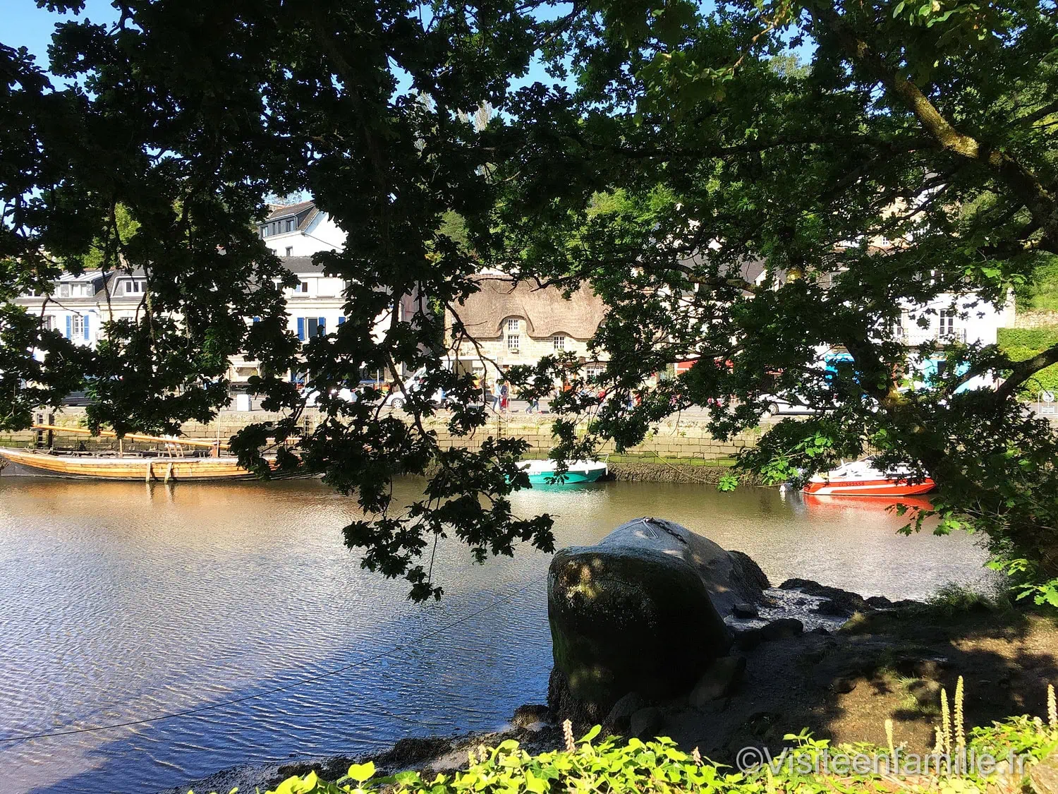Accueil Ville/Région Bretagne Rachel Qui n’a jamais entendu parlé des galettes de Pont-Aven ? je parle des succulentes galettes dont on ne se lasse pas de manger ; mais il y a aussi le film Les galettes de Pont-Aven avec Jean-Pierre Marielle. Pont-Aven est une petite ville du Finistère, en Bretagne. Quoi voir et que faire à Pont-Aven ? Pont-Aven est un joli village où on se plait à se balader. On flâne du côté du port, à travers les jardins et les ruelles. On passe devant un moulin, puis un autre, puis devant les galeries d’art. Pont-Aven est devenue une cité des peintres et des meuniers. Et comme dit le dicton ’14 moulins, 15 maisons’. A l’époque dans ce bourg, il y avait donc pratiquement autant de moulins que de maisons. Pont-Aven et les peintres Comptez le nombre de galeries d’art qui existent à Pont-Aven et vous n’en reviendrez pas. Les galeries sont les unes derrière les autres. C’est dire si Pont-Aven est un magnifique village qui inspire les artistes dont Gauguin, qui a passé ici une partie de sa vie avant d’aller aux iles Marquises. Comme lui, de nombreux peintres y ont séjourné. Ces peintres ont ensuite formé l’école de Pont-Aven. Tableau de mosaïques anciennes Ce tableau de mosaïques plante le décor. A Pont-Aven, il y a des peintres et des moulins. On peut voir que ce tableau est ancien à en croire les entreprises qui sont autour du tableau. En effet, les n° de téléphone (Tél.140 par exemple) nous indiquent que ce tableau n’est pas récent. Cette ville est située au bord de la rivière, l’Aven, et est proche de l’océan Atlantique. Notre guide nous emmène à travers la ville en nous donnant des explications sur ce que l’on voit. Par exemple, les toilettes ici sont classées monuments historiques. On erre, flâne à travers la ville pendant 2h. La légende de Pont-Aven Le guide nous raconte aussi la légende qu’il y a autour de ce rocher que l’on voit sur le port, à marée basse. Ce rocher appelé roche-forme représente le soulier ou le sabot de Gargantua, le géant. Selon la légende, il serait à l’origine du dessin des côtes escarpées et des nombreux îlots de la Bretagne dû au tremblement de terre qu’il a créé en tapant du pied, lorsqu’il se disputait avec sa femme à Pont-Aven. Un jour en tapant du pied, il aurait ainsi perdu son sabot. Bien sûr ce n’est qu’une des nombreuses légendes qui viennent de Bretagne. L’Aven A Pont-Aven, vous pourrez aussi visiter le musée de Pont-Aven. Faute de temps, nous n’avons pas pu le visiter. Ce musée a pour vocation de faire connaître au public les peintres qui ont séjourné dans la commune. Chaque peintre raconte Pont-Aven à sa manière. Voir aussiLa découverte fascinante du Kahl-Burg au Tréport Avant de repartir, nous faisons une halte dans la rue commerçante pour acheter souvenirs et galettes, bien évidemment. En effet, il est impossible de repartir sans elles. Villa de la Belle Epoque Nous terminons notre tour de Pont-Aven en passant devant l’église pour remonter vers le parking où nous sommes garés, juste à côté du cimetière. Nous avons passé une visite agréable de Pont-Aven sous un soleil radieux et un ciel bleu azur.