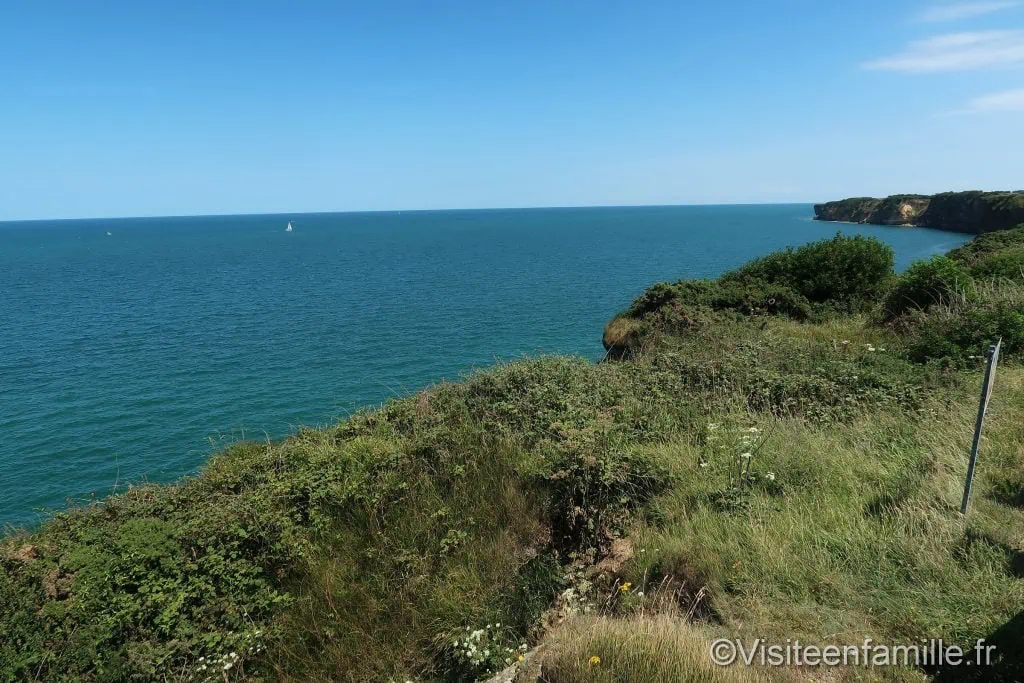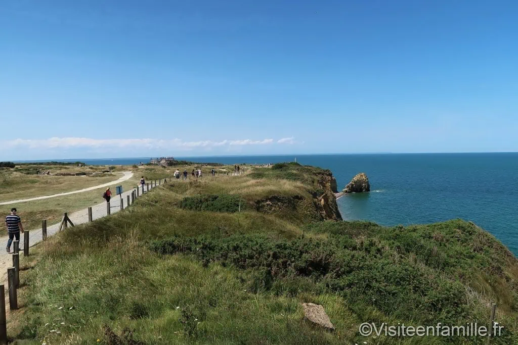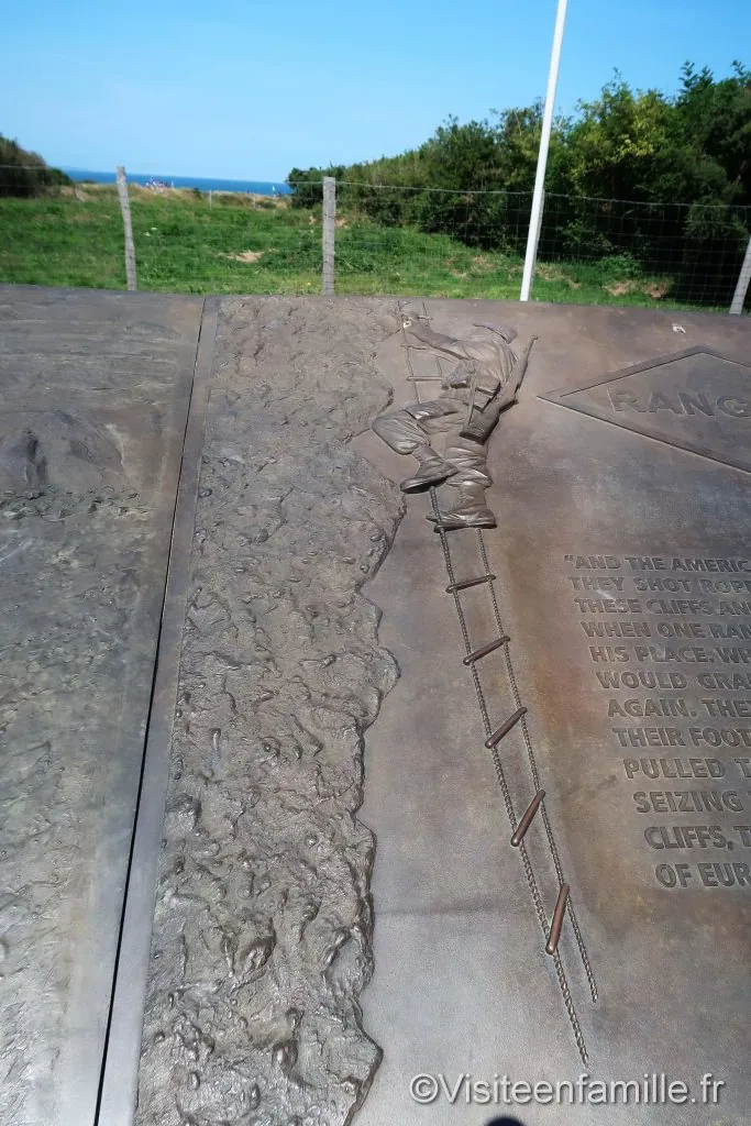 Accueil Pays France Rachel 1share1 Direction Cricqueville-en-Bessin, pour nous rendre à la pointe du Hoc qui fût le théâtre d’une terriblebataille lors du débarquement du 6 juin 1944. Si on se demande quelle visite peut on faire en Normandie, le pointe du Hoc fait partie indéniablement des visites incontournables. C’est encore plus vrai lorsque le soleil est au rendez-vous. La pointe du Hoc est une petite avancée, un cap de la côte normande situé entre les plages de UtahBeach à l’Ouest et d’Omaha Beach à l’Est. Le site est magnifique et très visité. Il est gratuit et de grands parkings sont à disposition. Les allemands ont redoutablement tenu cette position et ont fortifié la pointe avec le WN75. Dès que l’on arrive sur le site, on ne peut qu’être impressionné par les nombreux cratères. Il y a des trouspartout sur le site, plus ou moins grands. Cratère d’obus Le sol ressemble à un gruyère ce qui nous fait penser que la bataille ici a dû être terrible. Le temps n’a pas effacé les stigmates de la guerre qui a fait rage ici. De là, la vue est magnifique. Cette pointe se compose d’une falaise de 25 ou 30 mètres de hautsurplombant une plage de galets. De nombreux bunkers avec casemates pour canons ont été installées. casemate La prise par les alliés de cette pointe du Hoc était essentielle pour la réussite du débarquement carles avions de reconnaissance avait découvert de nombreuses artilleries lourdes allemandes quimenaçaient les deux plages avoisinantes prévues pour le Débarquement (Utah et Omaha beach). Descente dans un bunker On visite l’intérieur des bunkers pour appréhender les conditions de vie rudes des soldats allemands. Les soldats avaient organisé leur vie dans ces bunkers. La mission des soldats du 2 ème bataillon de rangers américains étaient donc d’atteindre cette pointe pour mettre hors service les bunkers allemands le plus rapidement possible.Ils escaladèrent les hautes falaises mais ils subirent de lourdes pertes, à en croire les cratères d’obusencore bien visibles. Voir aussiUne journée sur l’île de la Dominique La nature et la végétation poussent et tentent de reprendre leurs droits mais le terrain a été beaucoup trop accidenté qu’il en gardera les stigmates à tout jamais. Les bunkers sont bien conservés sur ce site.La beauté du paysage sous un soleil radieux contraste avec les évènements sanglants qui s’y sontdéroulés. Monument de la Pointe du Hoc Monument commémoratif du sacrifice des troupes américaines Plaque commémorative Visite d’un bunker Sur le chemin du retour nous nous arrêtons pour lire de petites biographies de quelques-uns deshéros de la pointe du Hoc. Sur les 225 rangers qui ont escaladé la falaise de la pointe du Hoc, seuls 90 ont pu continuer à se battre au matin du 7 juin 1944. L’opération fût une hécatombe. Nous repartons de ce site magnifique avec un pincement au cœur lorsqu’on pense à tous ceux qui ont combattu ici et qui y ont perdu la vie pour nous redonner notre liberté.