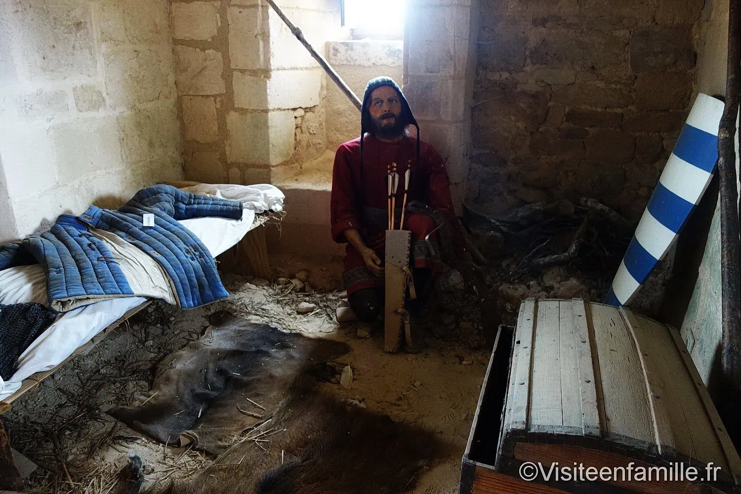 Accueil Ville/Région Charente-Maritime Rachel Ce très joli château médiéval privé du XIIème siècle permet une visite ludique et enrichissante pour petits et grands. Il a d’ailleurs été très bien restauré. Il n’y avait pas énormément de monde le jour où nous y sommes allés, la faute au temps qui n’était pas au beau fixe. Mais, a priori, le château souffre également d’un manque d’information. Nous avons eu la plaquette de cette visite sur notre lieu de vacances et nous avions trouvé que c’était une bonne idée de s’y rendre. C’est d’ailleurs pour faire plaisir aux enfants que nous les avons emmenés dans ce château. Ambiance médiévale Dès l’entrée, on se costume (tout le monde peut le faire ou en tout cas tous ceux qui le veulent) pour être dans l’ambiance médiévale : châtelaines et soldats, épée à la main, envahissent alors le château fort. Les enfants aiment se déguiser et ils sont également contents et fiers de voir leurs parents jouer le jeu, eux-aussi. Des énigmes à trouver On nous remet une feuille de jeux, une pour les enfants et une différente pour les adultes. Pas de jaloux, chacun a ses propres questions. Le questionnaire pour les enfants est surtout basé sur l’observation et il est construit de manière à ce qu’ils puissent répondre à toutes les questions. Ainsi, ils doivent s’intéresser un peu et observer ce qui les entoure. On passe d’énigmes en énigmes en parcourant ainsi tout le château. Les enfants doivent reconstituer un mot mystère grâce aux solutions des diverses énigmes. A la fin, les réponses sont vérifiées par le personnel du château à l’accueil et les enfants reçoivent un bonbon en guise de récompense s’ils ont trouvé le bon mot mystère. Il y a donc un vrai challenge pour eux. On part ainsi à la découverte des différentes époques qui ont marquées ce château : de Guillaume de Lusignan, fondateur du château à aujourd’hui. Visite du château C’est une ballade intéressante à travers les siècles qui nous mène dans le jardin, le château lui-même, dans l’étable… Canards et poules gambadent librement dans les alentours. De multiples jeux sont éparpillés dans le parc. Nous allons jusque dans certaines pièces du château pour découvrir des scénettes du Moyen-âge reconstituées avec des mannequins de cire. Voir aussiLe marché de Noël de Metz et ses illuminations, sa féérie des glaces et son sentier des lanternes Un soldat qui monte la garde au château Princesse et chevalier pour un jour Nous faisons ainsi un saut dans le temps à la découverte de la vie au Moyen-âge mais cette vie était également emprunte de magie : en effet, le château était protégée par la fée Mélusine. Nous avons même eu droit à une démonstration de tir au trébuchet. Le trébuchet est une sorte de catapulte à contrepoids. Résultat du jeu : au final, nous avons été moins doués que les enfants et avons fait quelques erreurs dans notre questionnaire, ce que bien sûr les enfants n’ont pas oublié de nous rappeler. Oui, là il faut prendre sur soi, nous n’avons pas été très brillants. Pour le midi, on peut manger sur place car des paniers repas sont proposés à 8 €. Ce fût très pratique pour nous. Nous avons ainsi passé une bonne après-midi ludique.