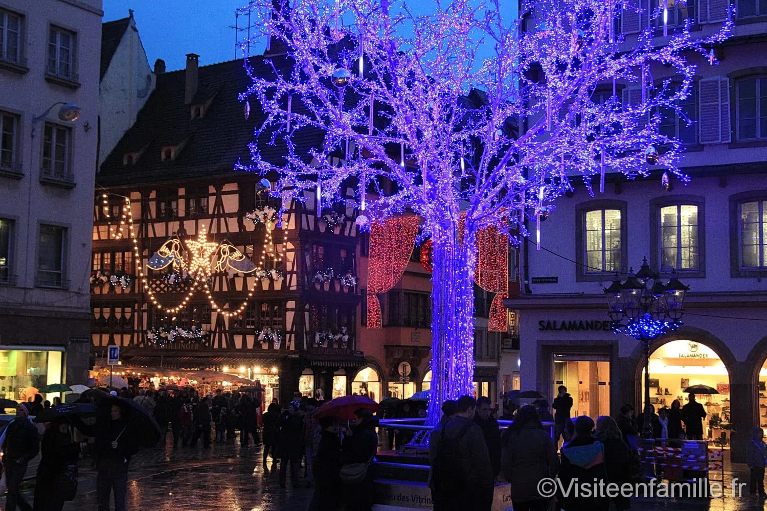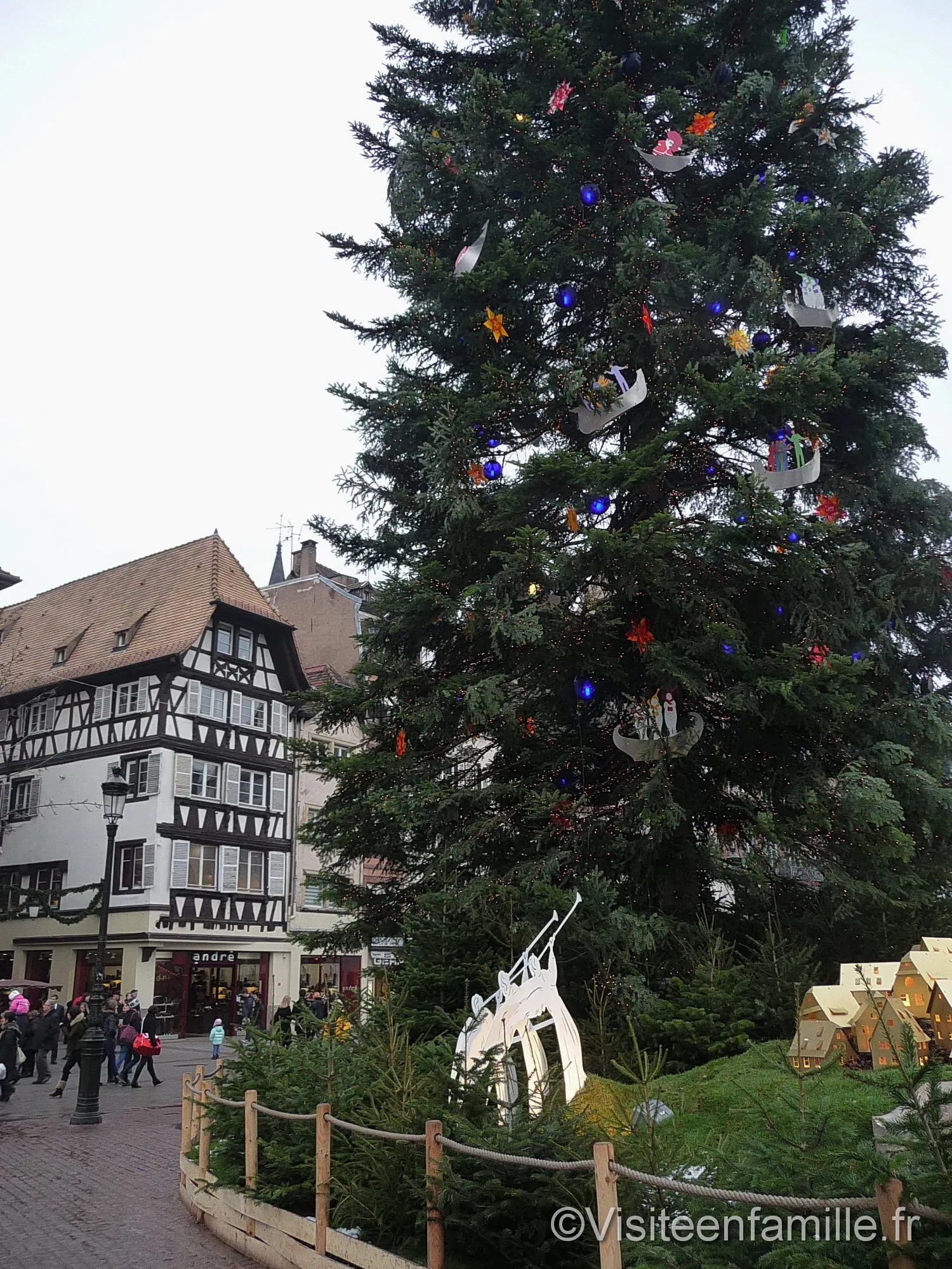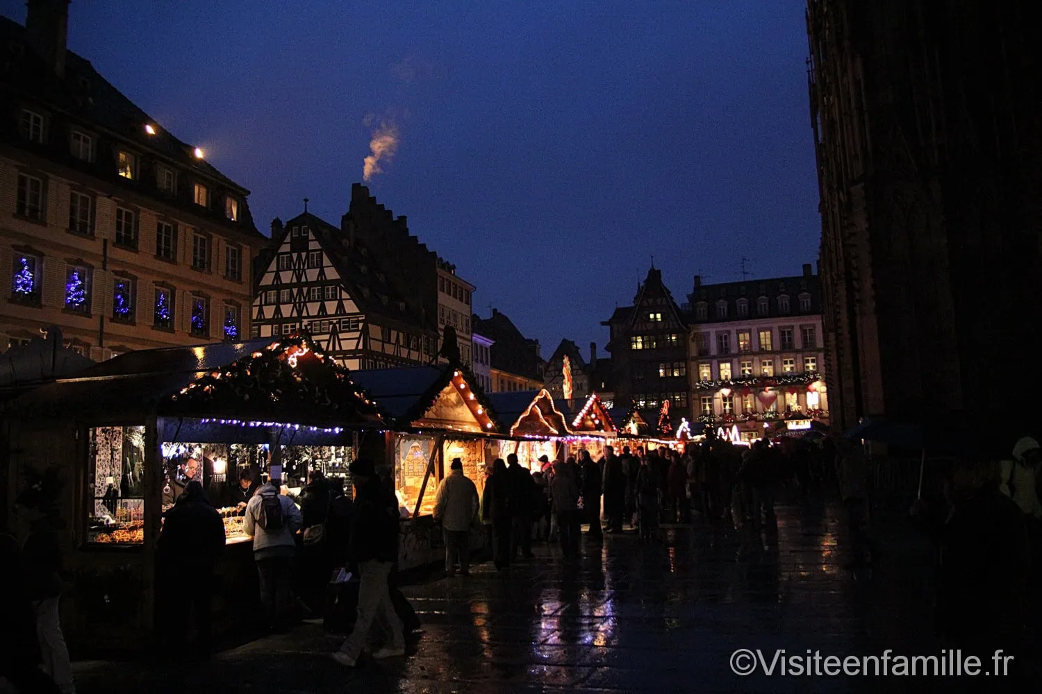 Accueil Ville/Région Alsace Rachel Le marché de Noël de Strasbourg est LE marché de Noël où il faut se rendre au moins une fois dans sa vie. Certains y retournent d’ailleurs chaque année. C’est un des plus vieux marchés de Noël de France car il existe depuis 1570 mais c’est aussi un des plus grands d’Europe. De tradition germanique, ces marchés de Noël attirent de plus en plus de monde qui profitent de ce moment pour flâner dans les rues illuminées. En Alsace les marchés de Noël se développent plus particulièrement, y compris dans les villages. Depuis 1992 Strasbourg s’est autoproclamée Capitale de Noël. En effet, il y a au moins onze endroits où des chalets se sont montés le temps des fêtes. Il y a le Christkindelsmärik sur la place Broglie qui est le 1er lieu à voir. Cela signifie ‘marché de l’enfant Jésus’ en alsacien. Des dizaines de chalets sont concentrés sur cette place pour le plus grands plaisirs des touristes. On y trouve toutes sortes de choses : nourriture, objets de décorations, boules de Noël, peluches etc. Outre le fait que le marché de Noël de Strasbourg soit typique avec ses maisons à colombage, il est devenu une attraction touristique indiscutable qui apporte à la ville une manne financière incontestable. En effet, pendant cette période la plupart des hôtels sont remplis. Tous les chalets sont identiques. On trouve également ces chalets Place de la Cathédrale, Place d’Austerlitz, dans la petite France, Place Gutenberg où chaque année Strasbourg invite un pays à faire découvrir ses spécialités, Place Kléber où trône un grand sapin ainsi que le village du Partage (de nombreuses associations caritatives se sont regroupées pour former une immense chaine humanitaire) et ailleurs. En effet, sur la plupart des places de Strasbourg ces petits chalets ont poussé comme des champignons. Partout de nombreuses victuailles typiquement alsaciennes sont à déguster comme des flammenküches, des bretzels, des pains d’épices qui s’accompagnent traditionnellement d’un verre de vin chaud. Vous pourrez aussi déguster du foie gras accompagné d’un verre de vin d’Alsace ou encore boire une bière de Noël alsacienne, goûter du miel et des confitures des Vosges. Cette année après les attentats déjoués, Strasbourg est particulièrement mise sous haute surveillance. Typique avec ses illuminations et ses maisons traditionnelles à colombage, le marché de Noël de Strasbourg est un lieu à découvrir en famille dans une ambiance chaleureuse. On flâne, on s’y attarde, on y mange, on découvre, et surtout on retombe en enfance devant toutes les décorations, les guirlandes, les boules de Noël typiques de la région. C’est d’ailleurs là que nous avons acheté la boule de 1er Noël de notre fils, qui n’a d’ailleurs pas résistée au petit diable. Galerie photos : Voir aussiFête des Sorcières de l’Est à Hagondange